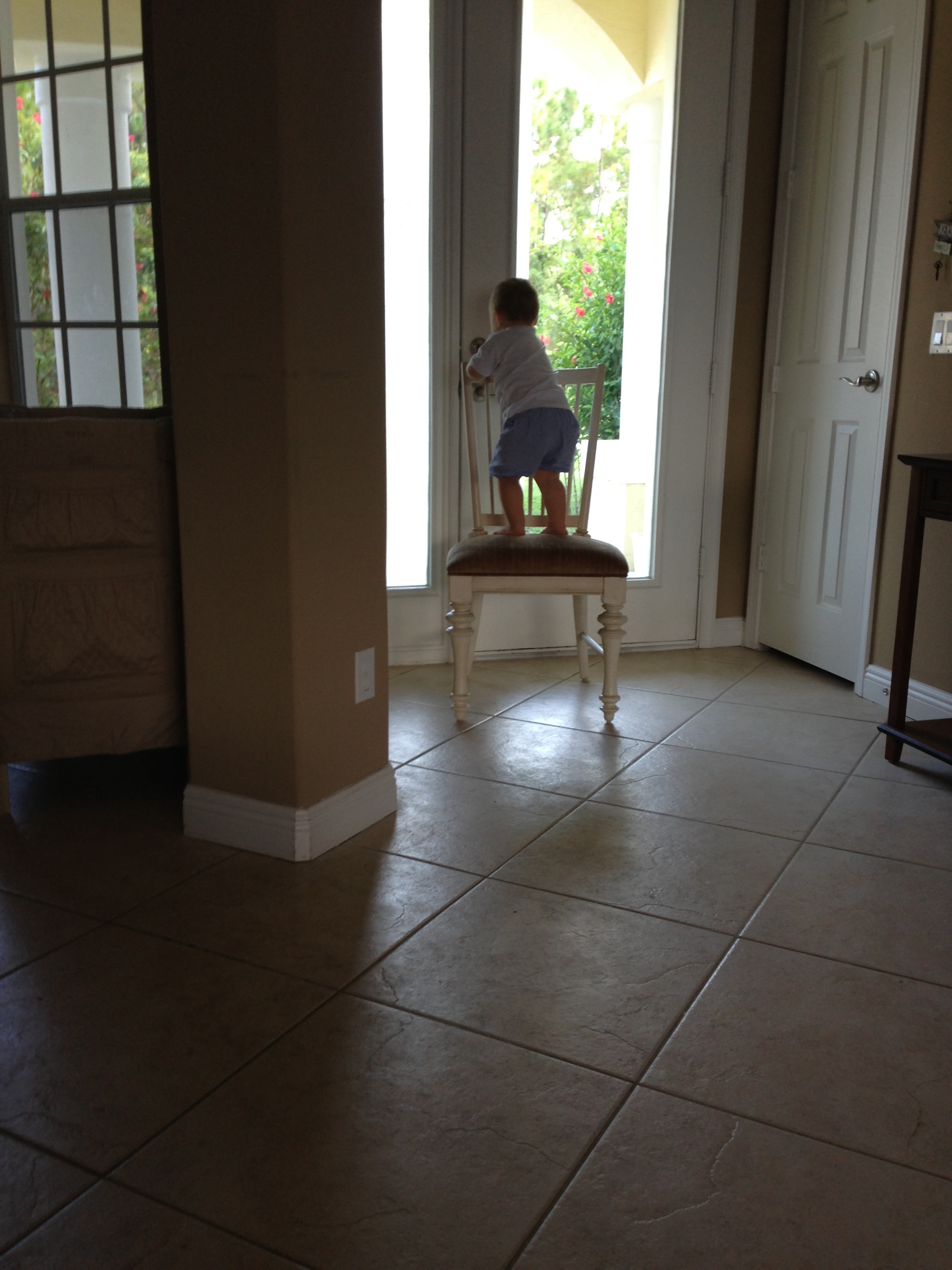 He is a very busy boy. I was nursing Grace when he started dragging the chair to the front door. I’m letting him do some exploring since I don’t want to disturb Grace. However when he ran past me with a screw driver in his hand I panicked, wrapped grace off the boob and started chasing him. I guess we will be spending the weekend readdressing our baby proofing.