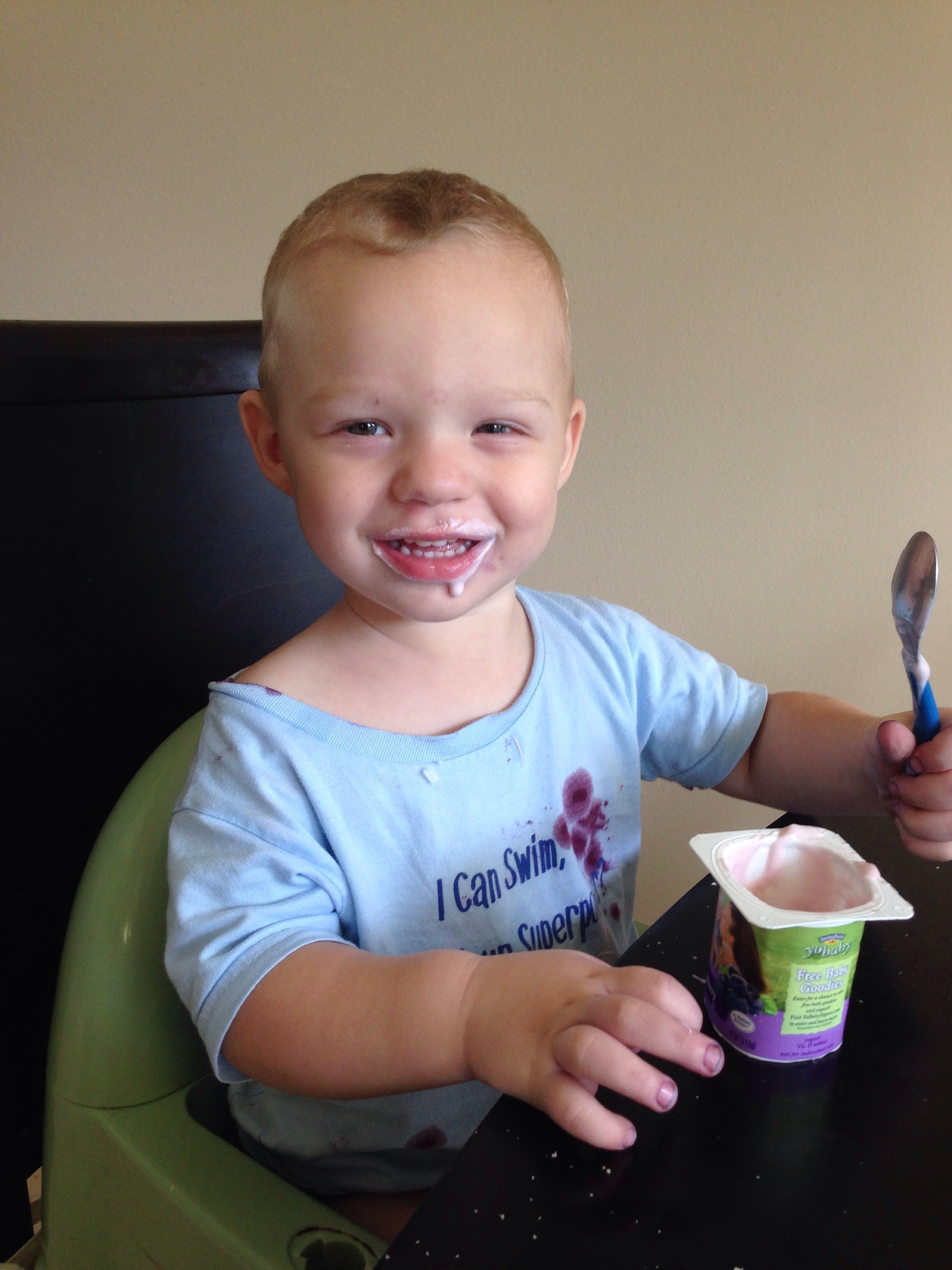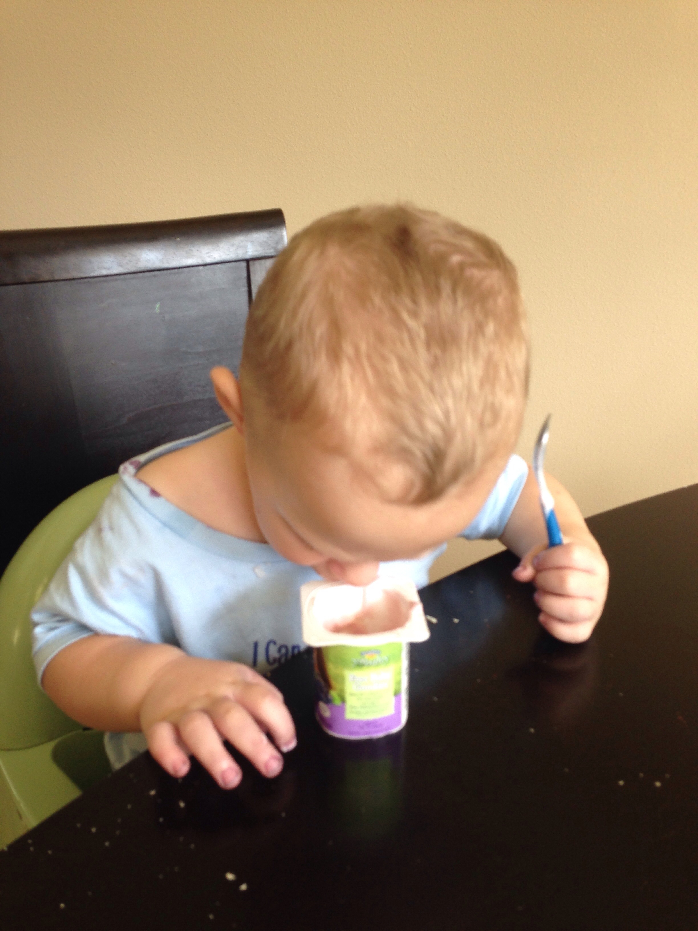 Spoons & Yogurt Posted on November 1, 2013 by adubefairytale 0 Letting Timmy feed himself is a messy experience. He did really well this morning with his yogurt. He’s a pro with a fork and today was a big success with a spoon. Share this: Click to share on X (Opens in new window) X Click to share on Facebook (Opens in new window) Facebook Like Loading... Related