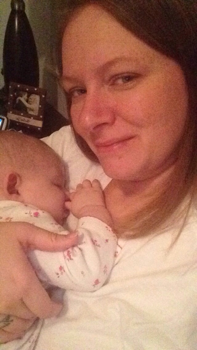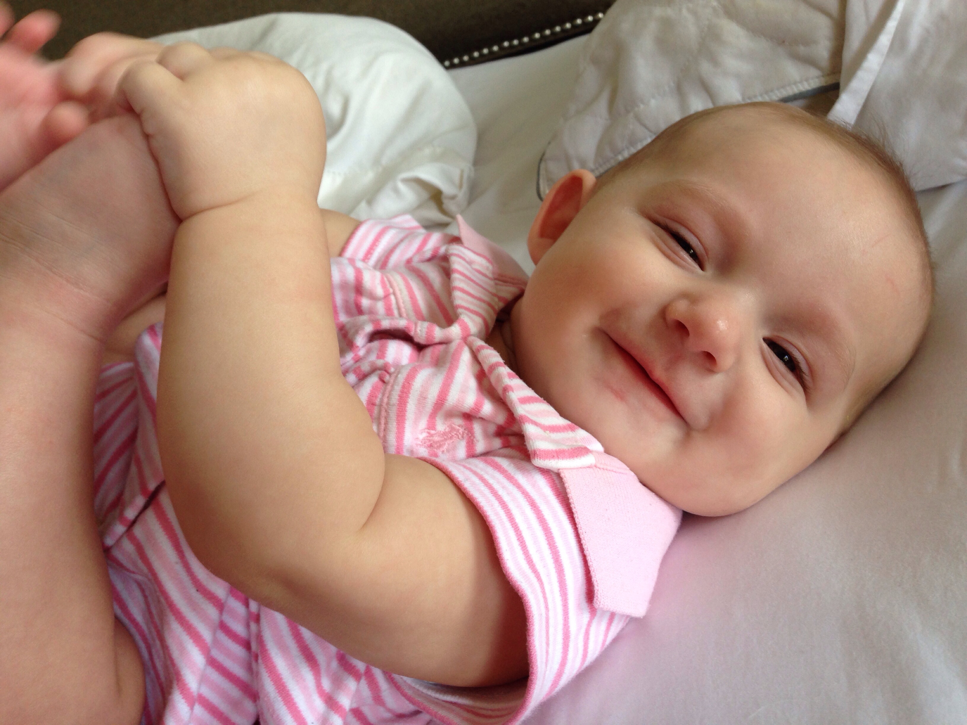 She weighs 17 pounds and 12 ounces. So far she’s tried bananas and last night I gave her a taste of mashed potatoes. And by taste I mean the teeniest tiniest piece.