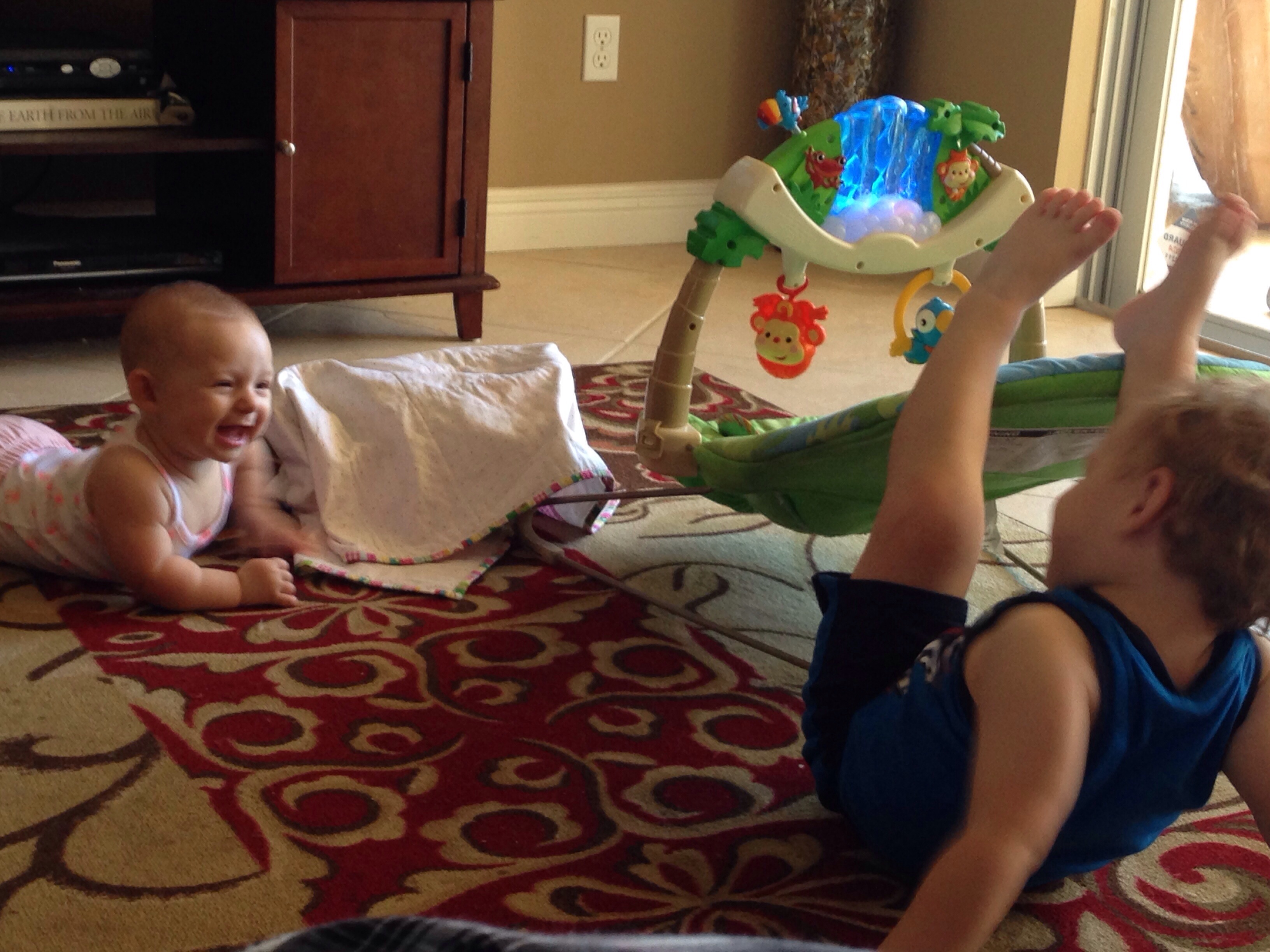 Today Timmy asked to take a bath and then sweetly said, “Sissy bath too?” So I picked her up and when she saw the tub she giggled sooo loud. Apparently she’s a big fan of bathtime.