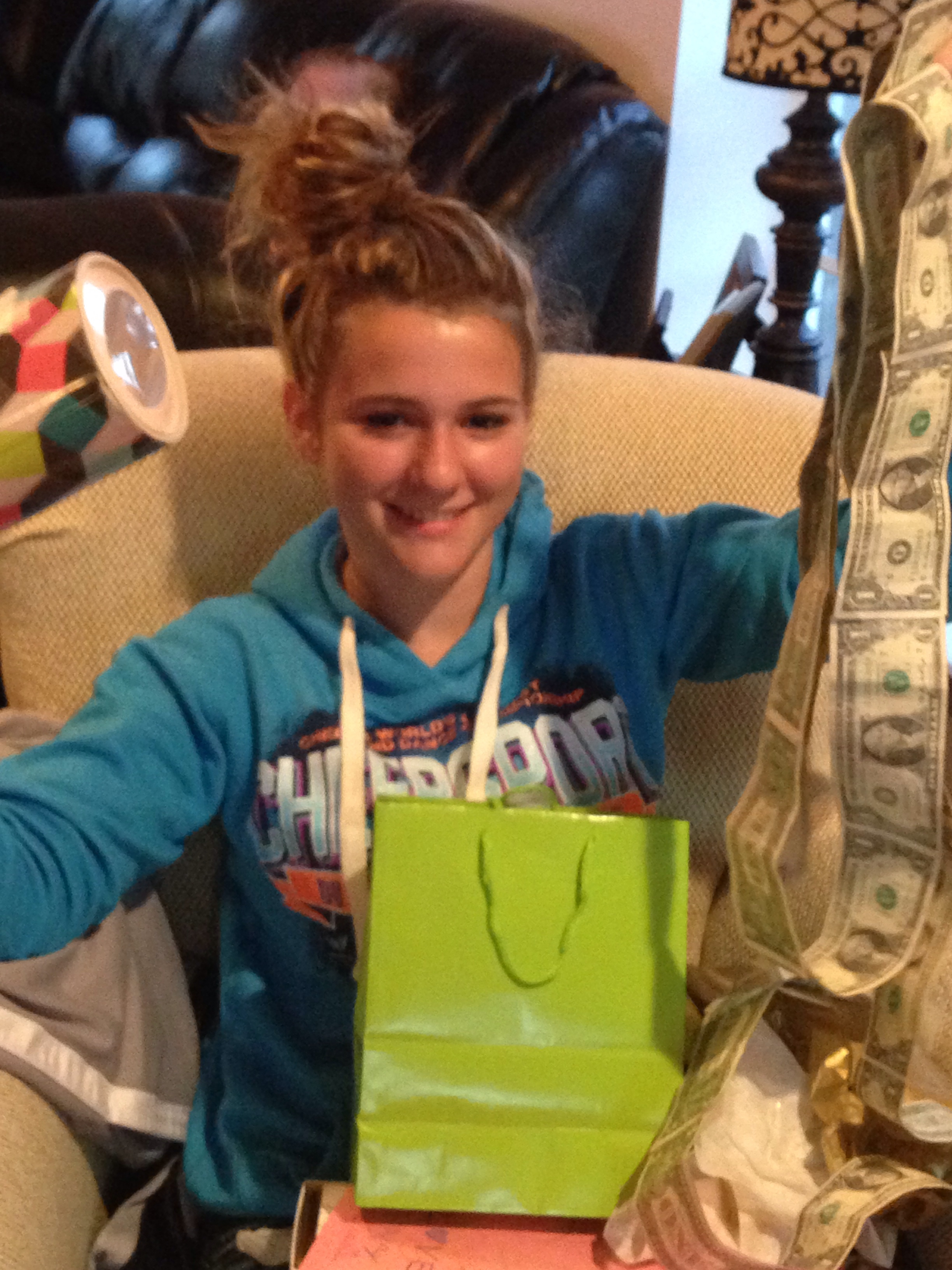 So we searched Pinterest for money giving ideas and it turned out great. Sam was so surprised. I’m pretty sure she thinks we are retarded but deep down she thinks we are awesome, I hope.