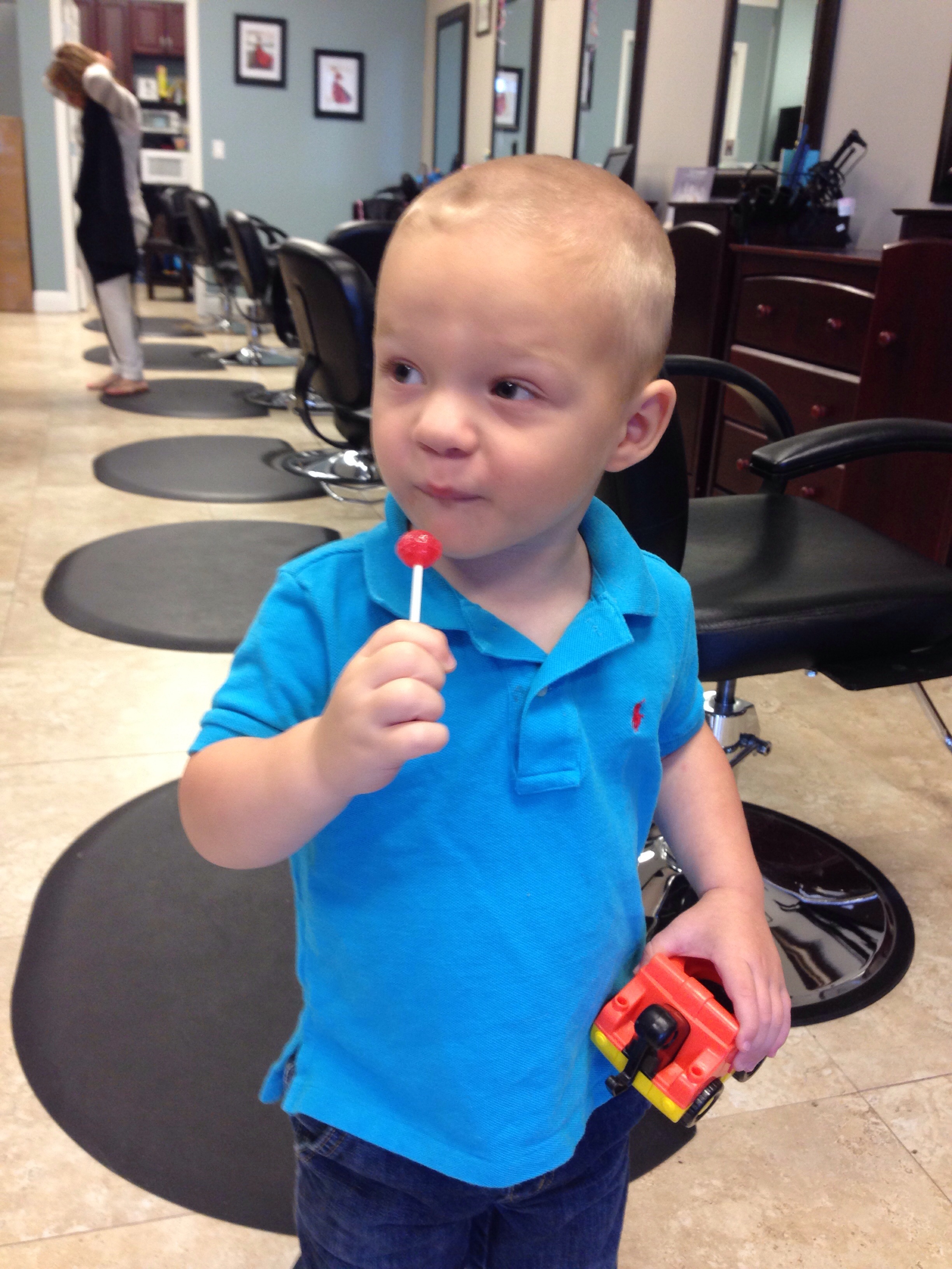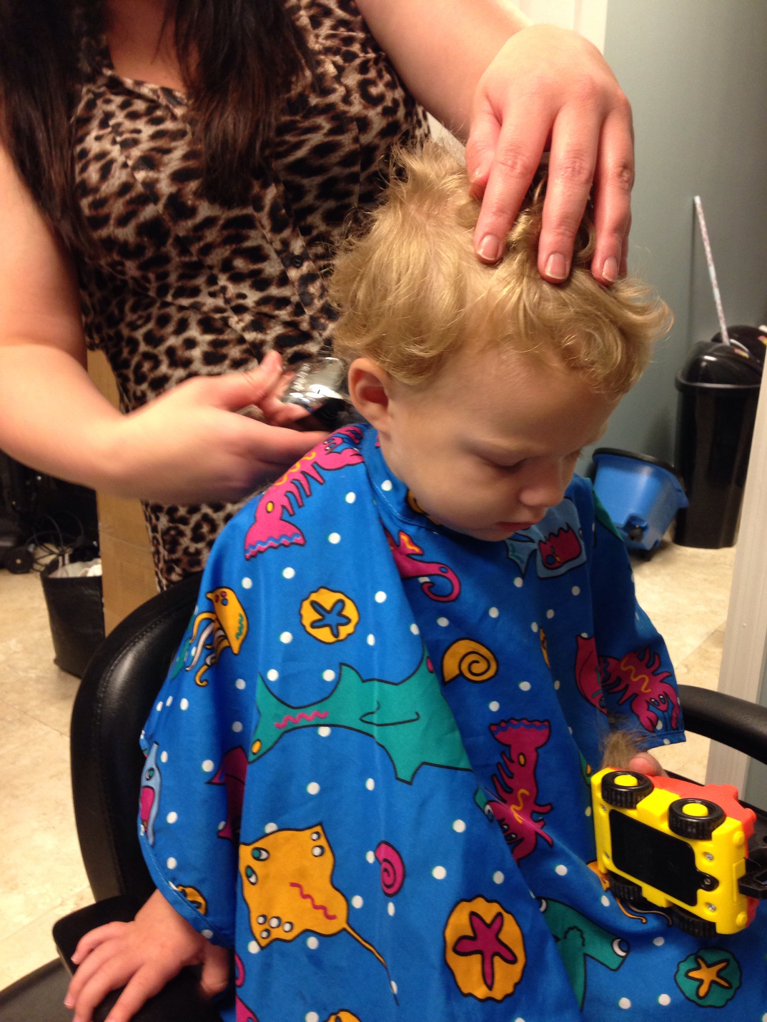 And I’m sad to report that we buzzed Timmy’s hair. No more sweet curls but I think it’s better for this hot weather.