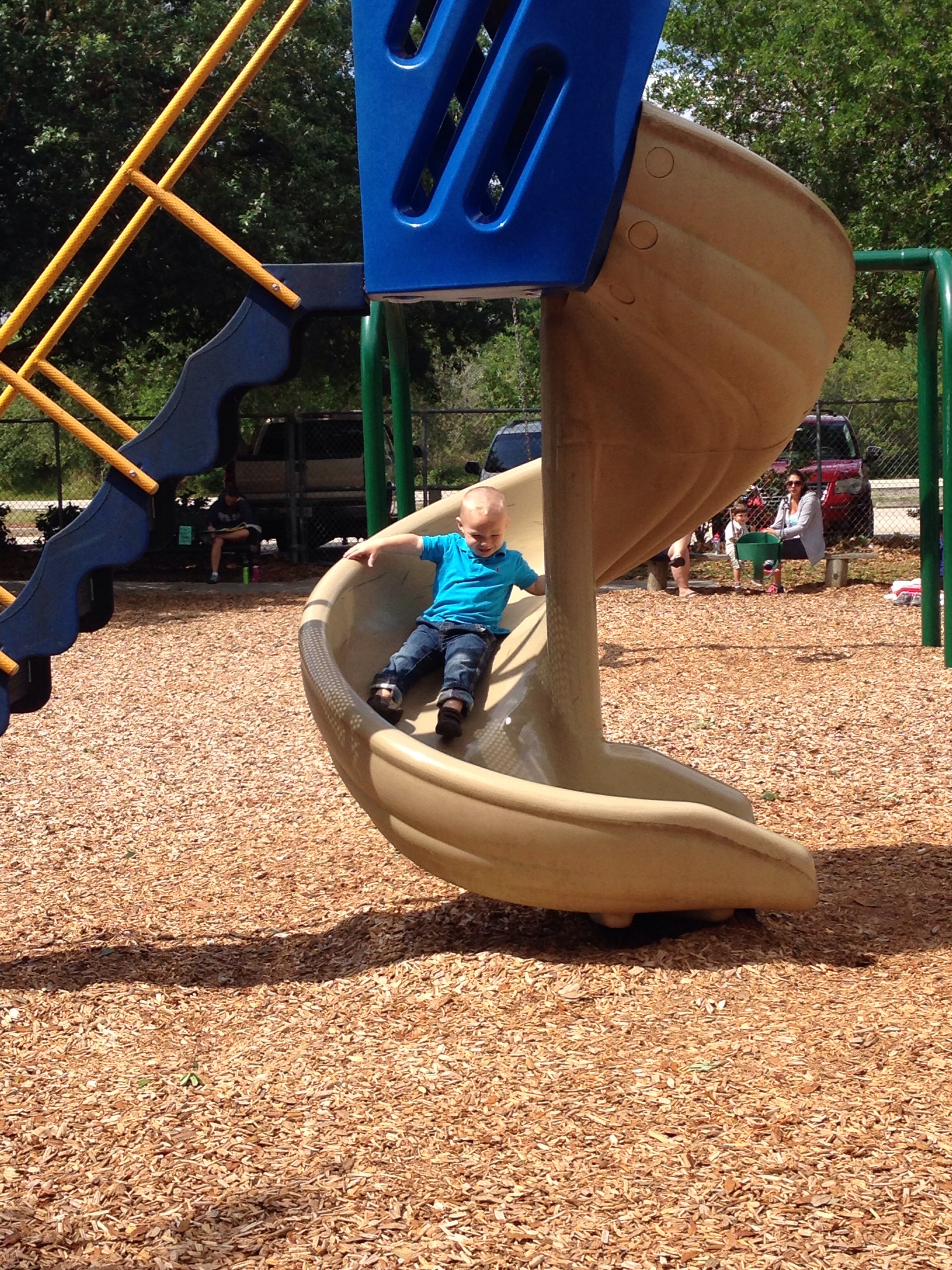 He is crazy about slides. This child is fearless and I can’t wait until I can take him on big kid rides to show him what it’s all about.