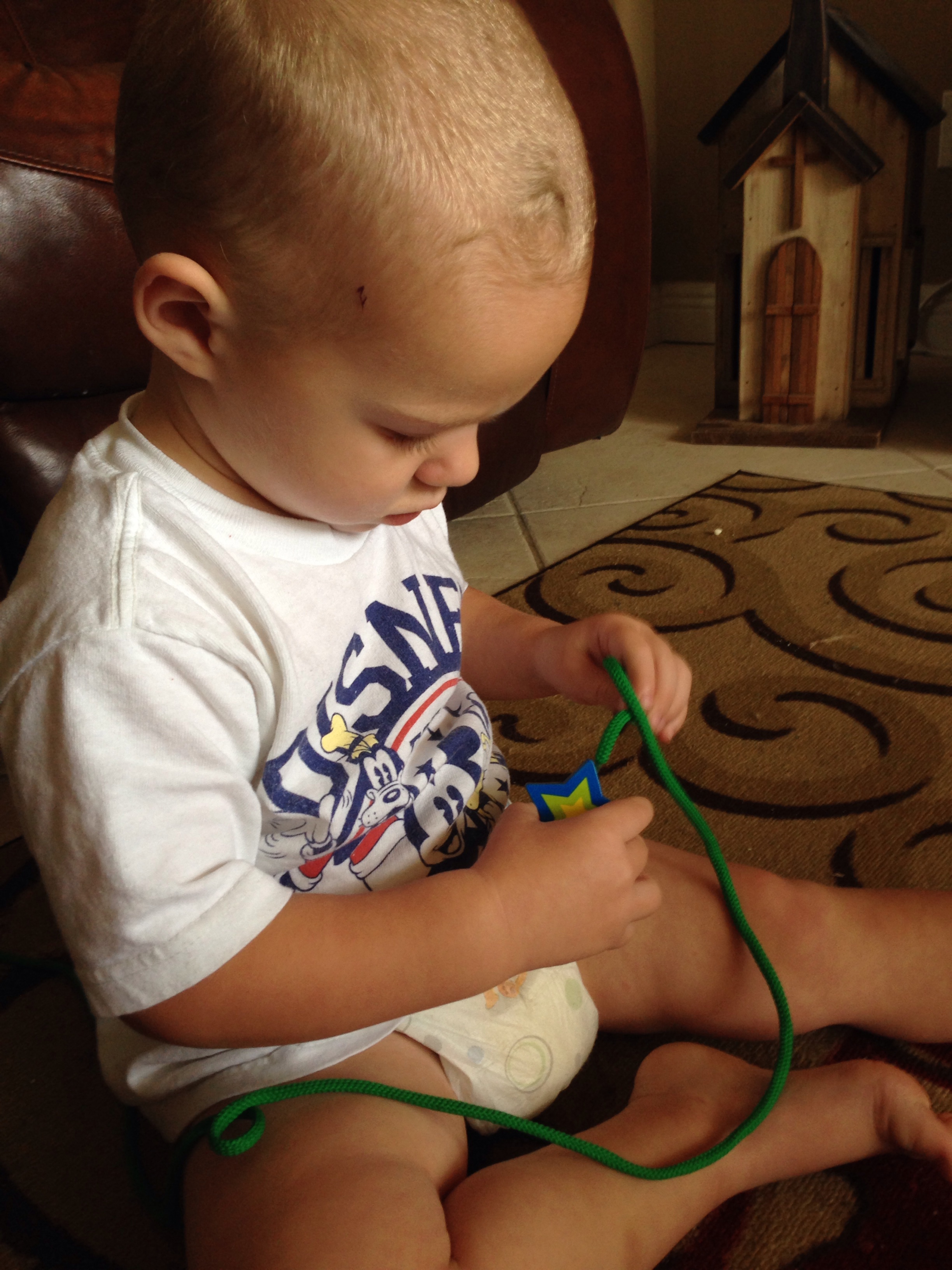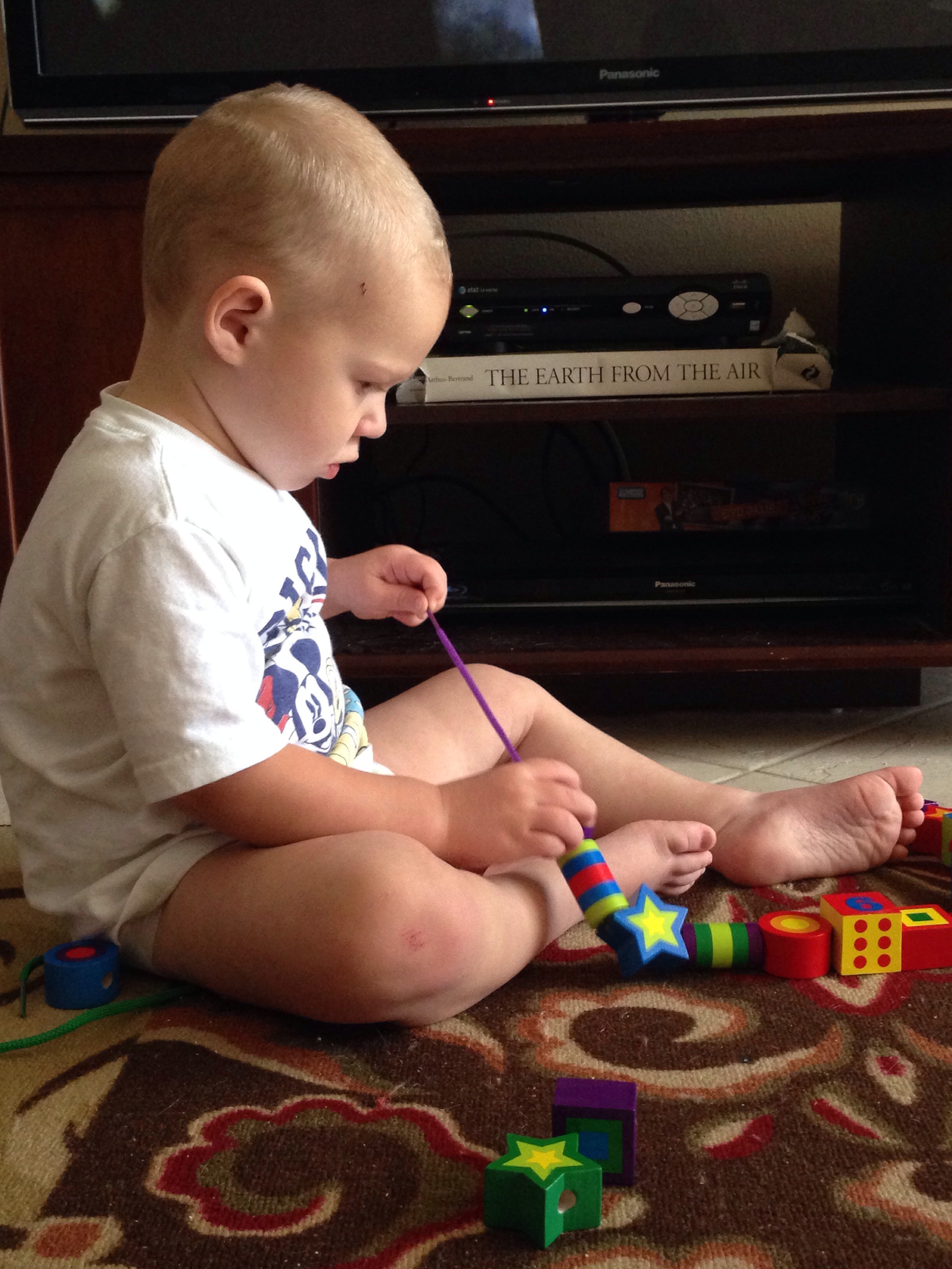 He also worked on lacing beads which eventually {like everything else} turned into lassoing beads. He is all about being a cowboy. You even hear him saying “Yeehaw!”