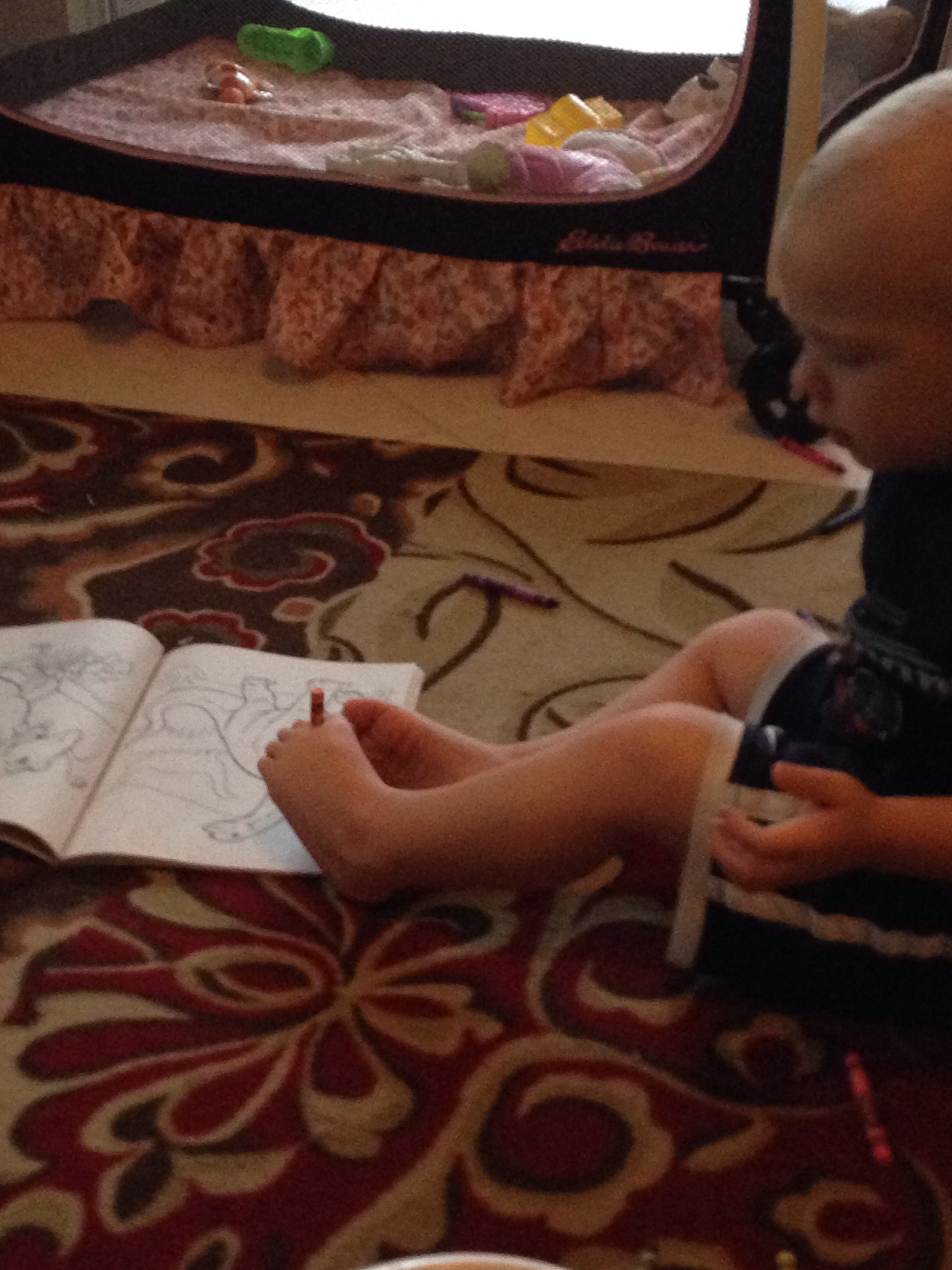 He took coloring to new level and decided he was going to use his feet instead of his hands.