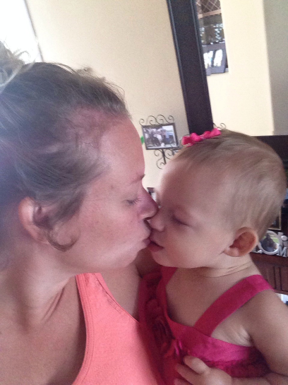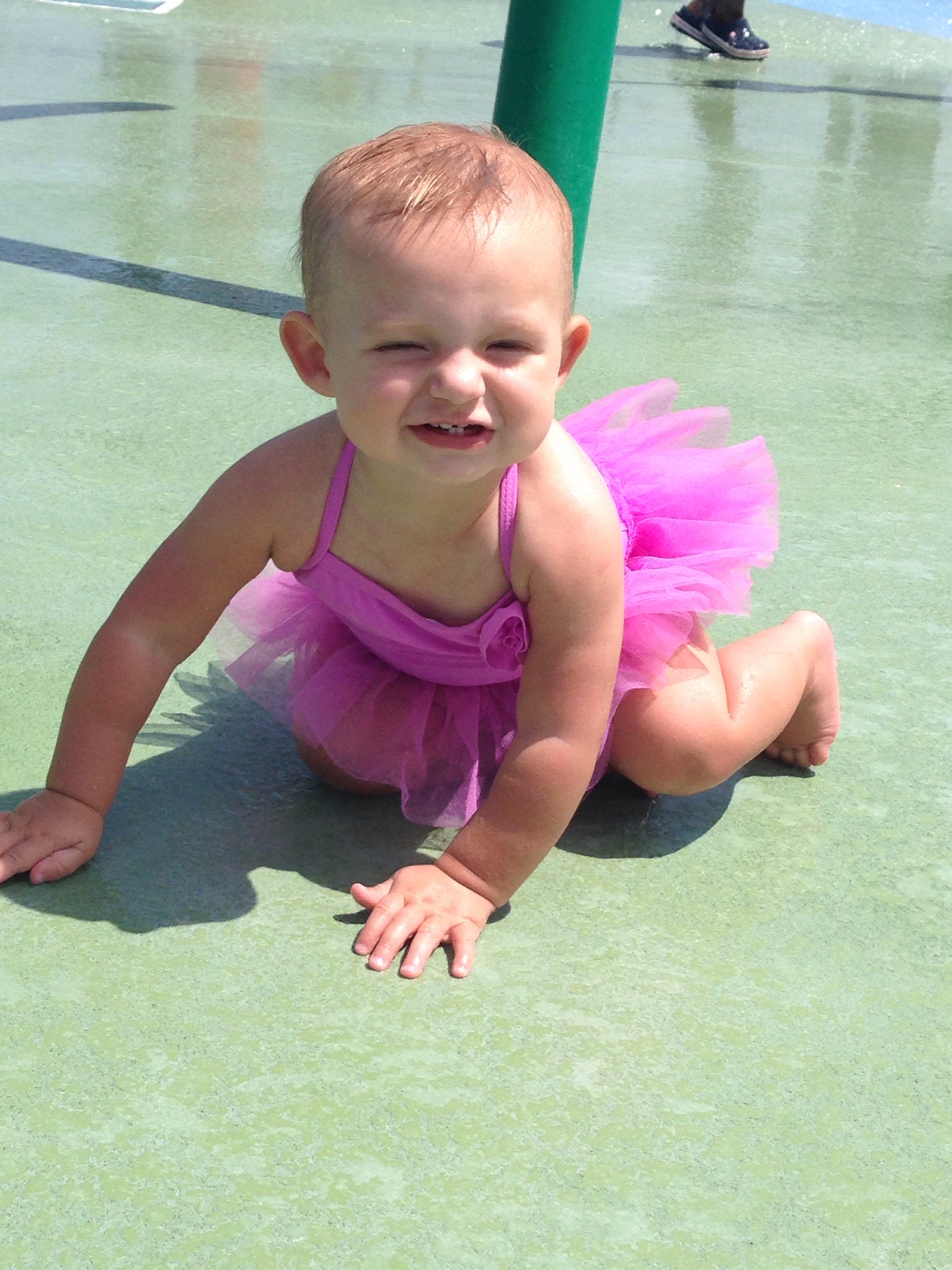 She loves wagon rides and riding in Timmy’s pickup truck. Absolutely LOOOVES to sing. She took her first music class and went to her first splash park this month. She carries toys in her mouth like a doggie. She loves to share food and her kisses are very wet {as in mouth wide open, tongue out} but we still love them.