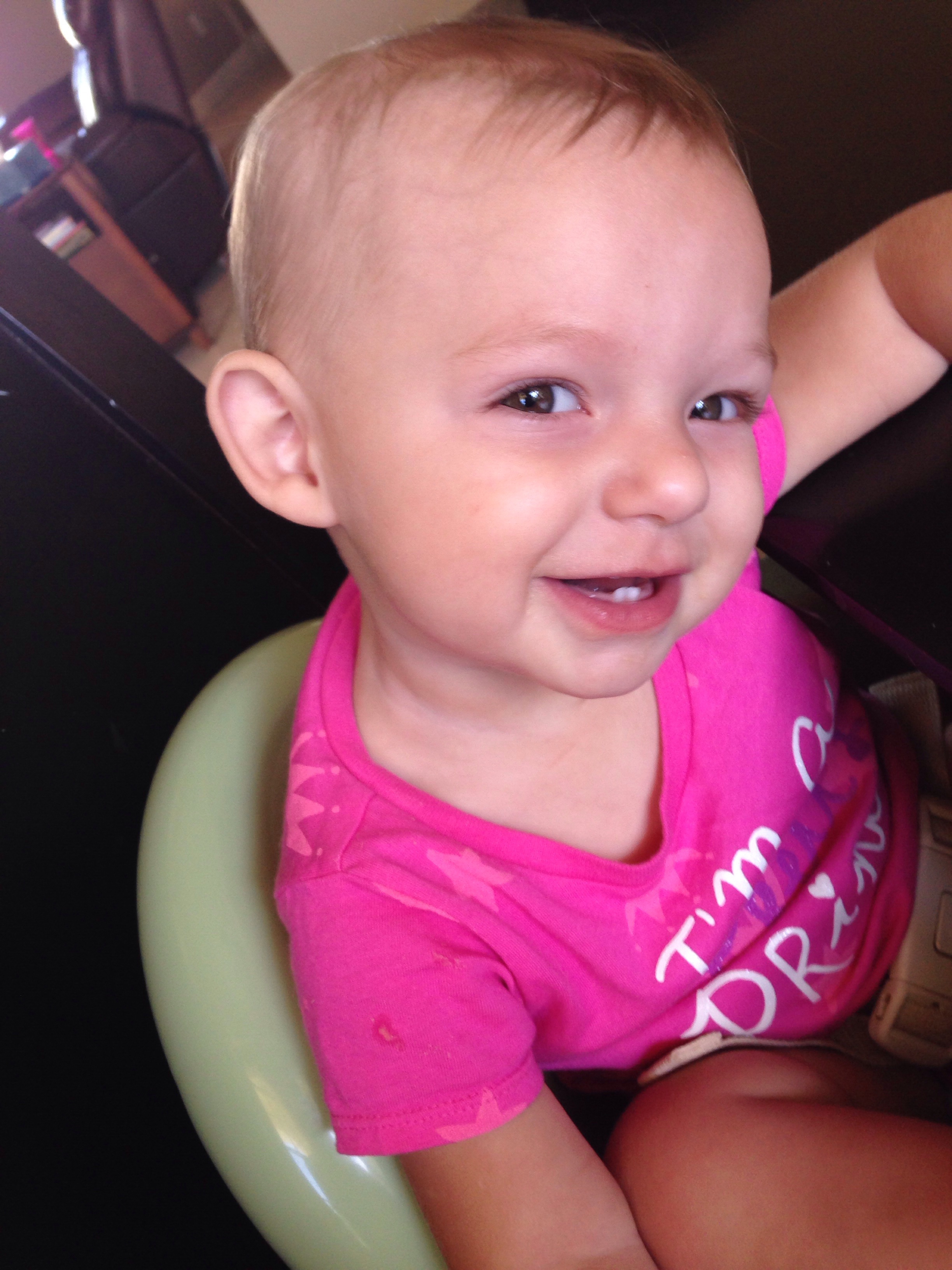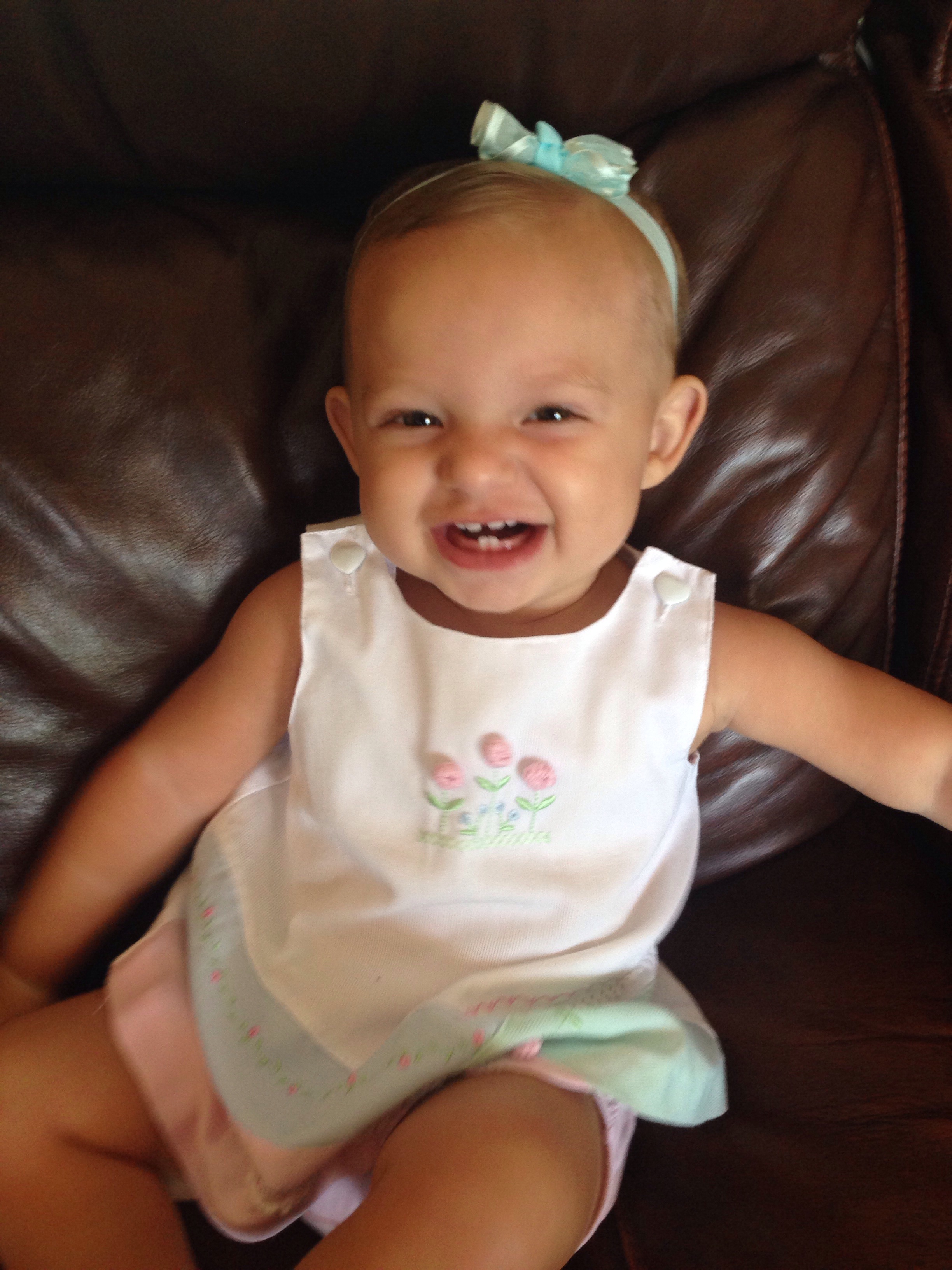 She’s still tiny weighing 18 pounds 13 ounces and 28 inches long. At her age Timmy was 23 pounds! So to us she is just a little munchkin. Even baby cousin Max is catching up to her.