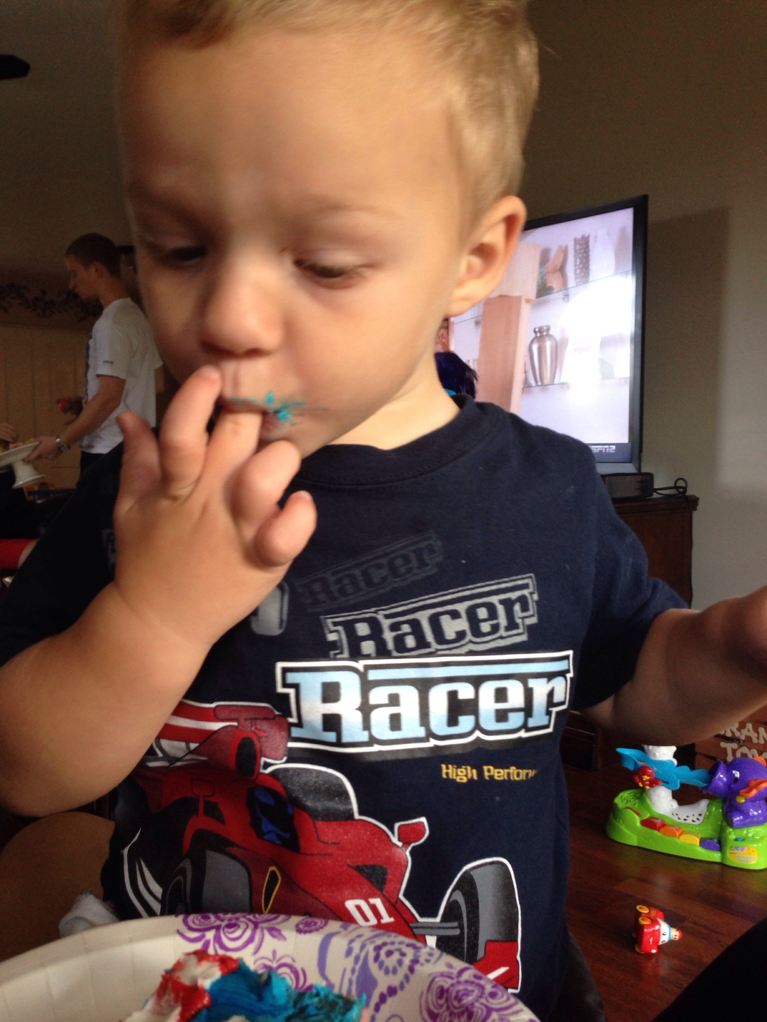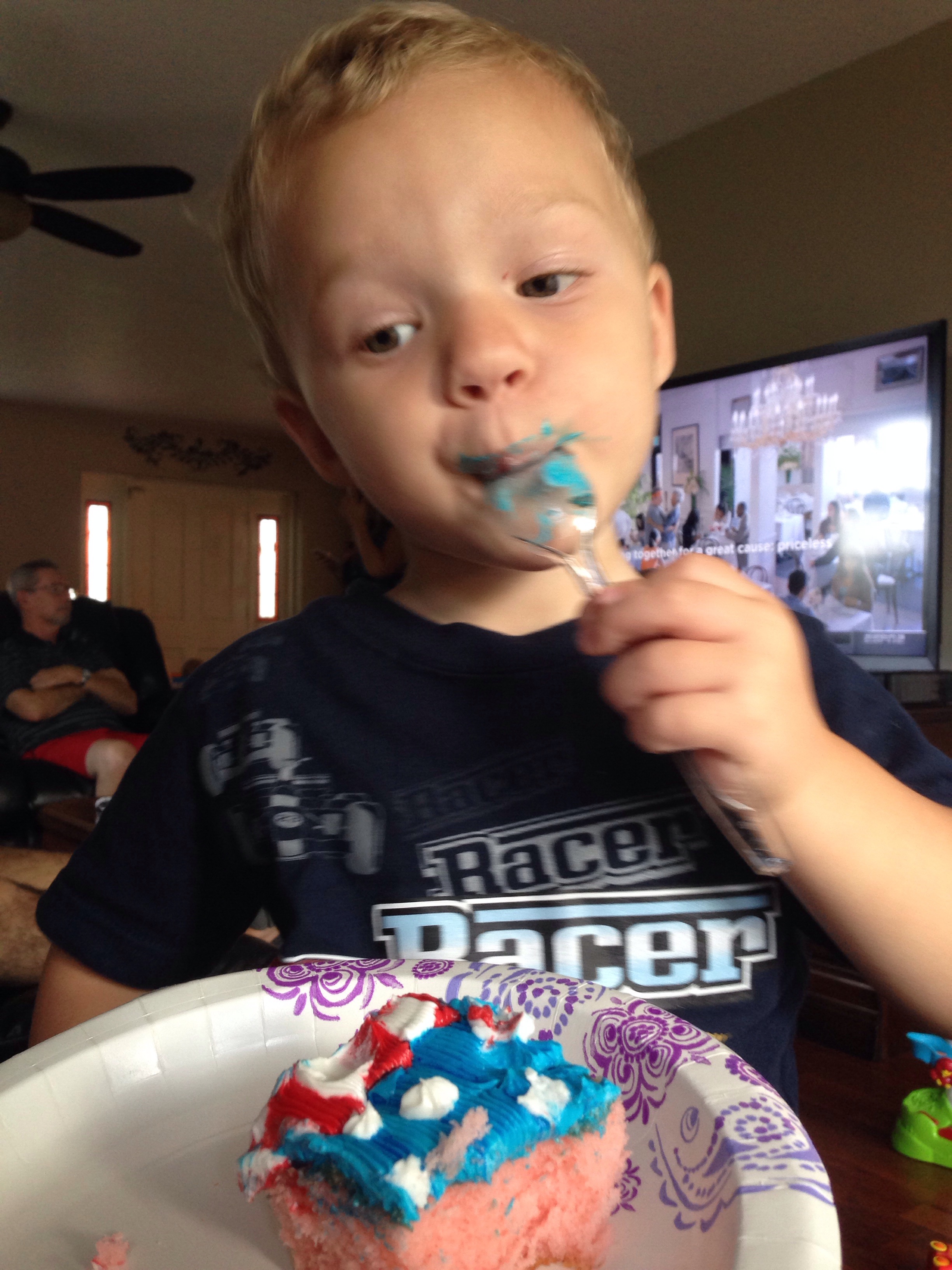 Daddy wanted Timmy to stay up past bedtime to watch the Macy Fireworks. It was worth it to hear all the “ooooo pretty” and “wowwwww mommy look!” Then Tim taught him to put his hand on his heart during the Star-Spangled Banner. It was adorable.