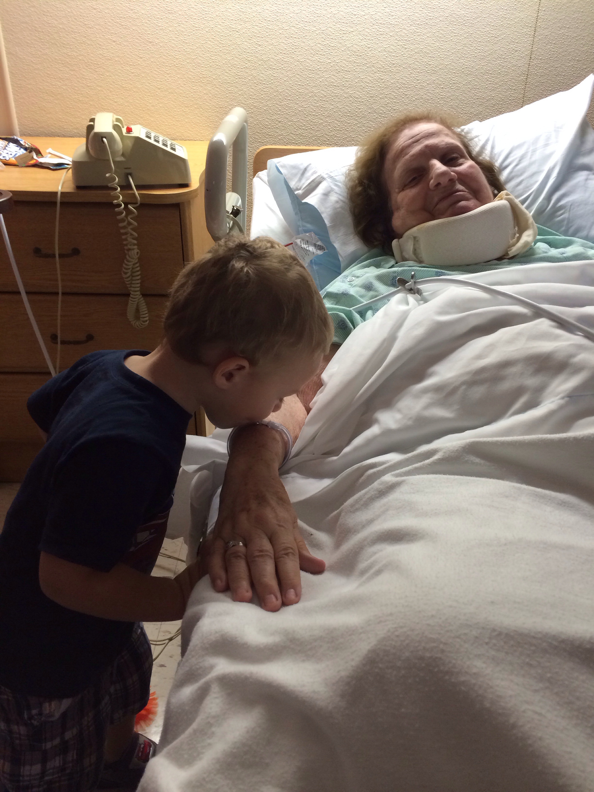 Then we went to visit Great Grandma at the nursing home. Timmy made it his job to brighten everyone’s day. He was telling everyone, “Feel better!” And he kissed Great Grandmas booboos all better.