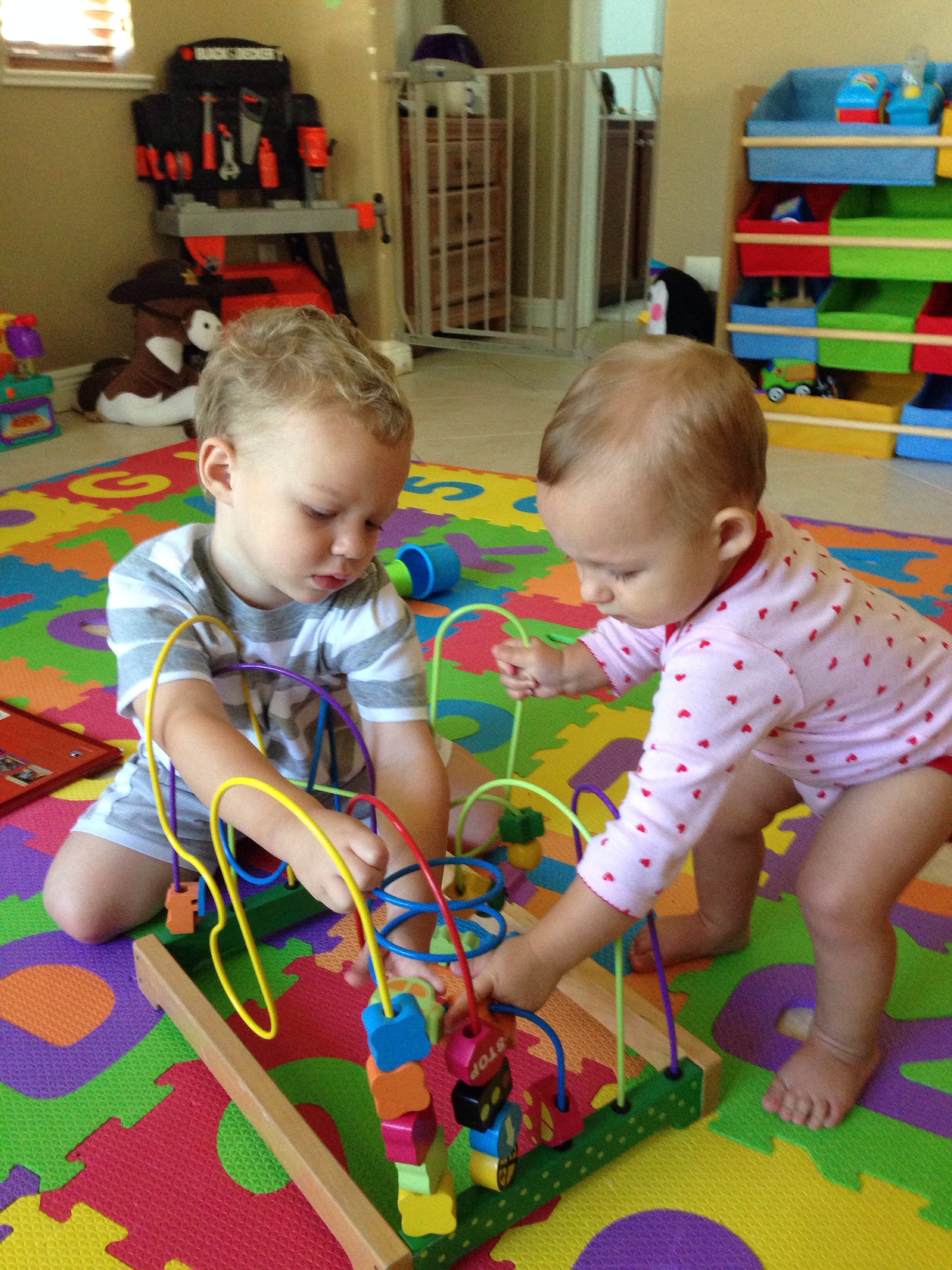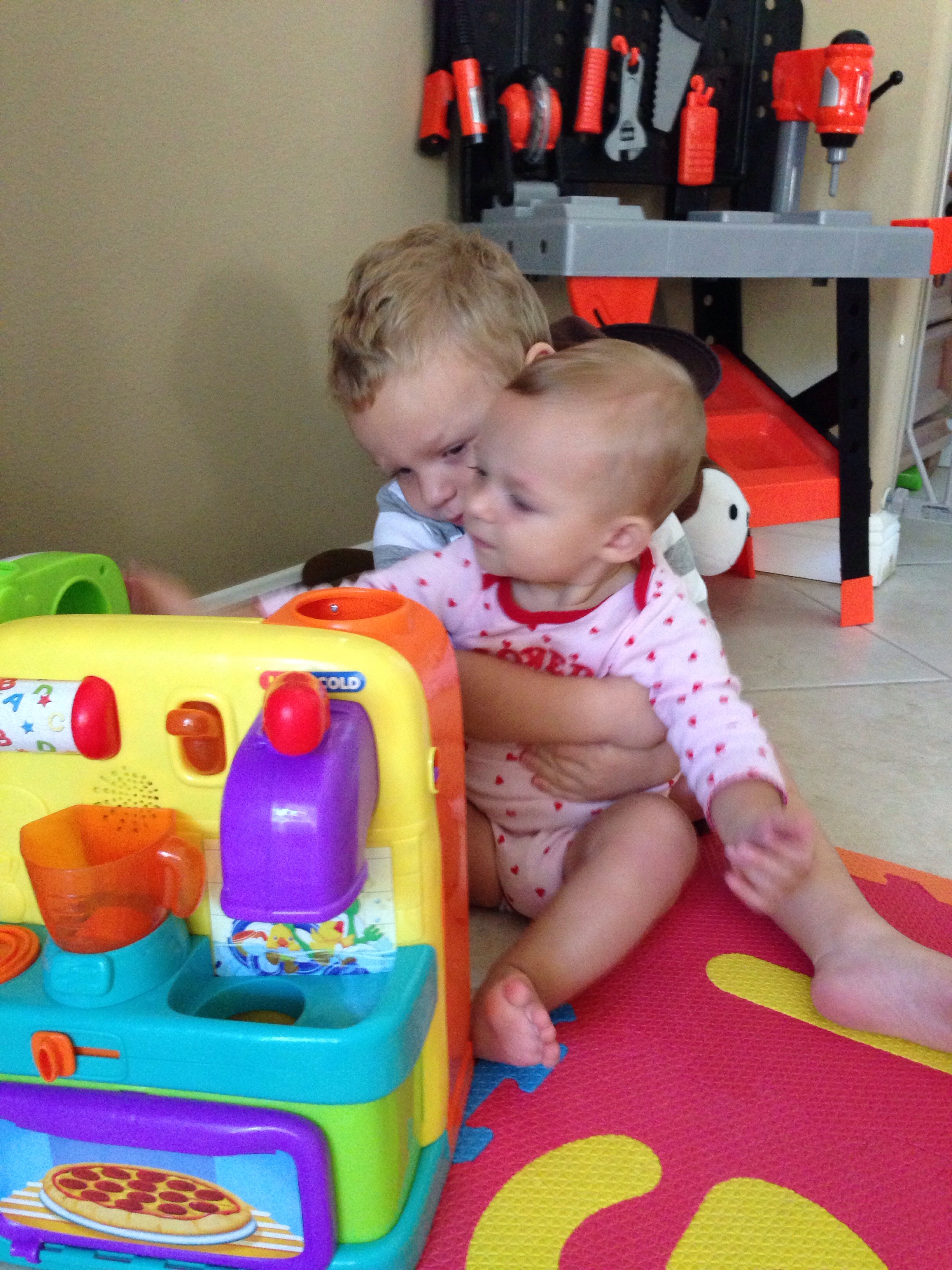 Playing Togetherness Posted on July 23, 2014 by adubefairytale 0 Grace is big enough now to really play with Timmy. Sometimes they play kitchen or puzzles or peek-a-boo. It’s so awesome to watch. Share this: Click to share on X (Opens in new window) X Click to share on Facebook (Opens in new window) Facebook Like Loading... Related