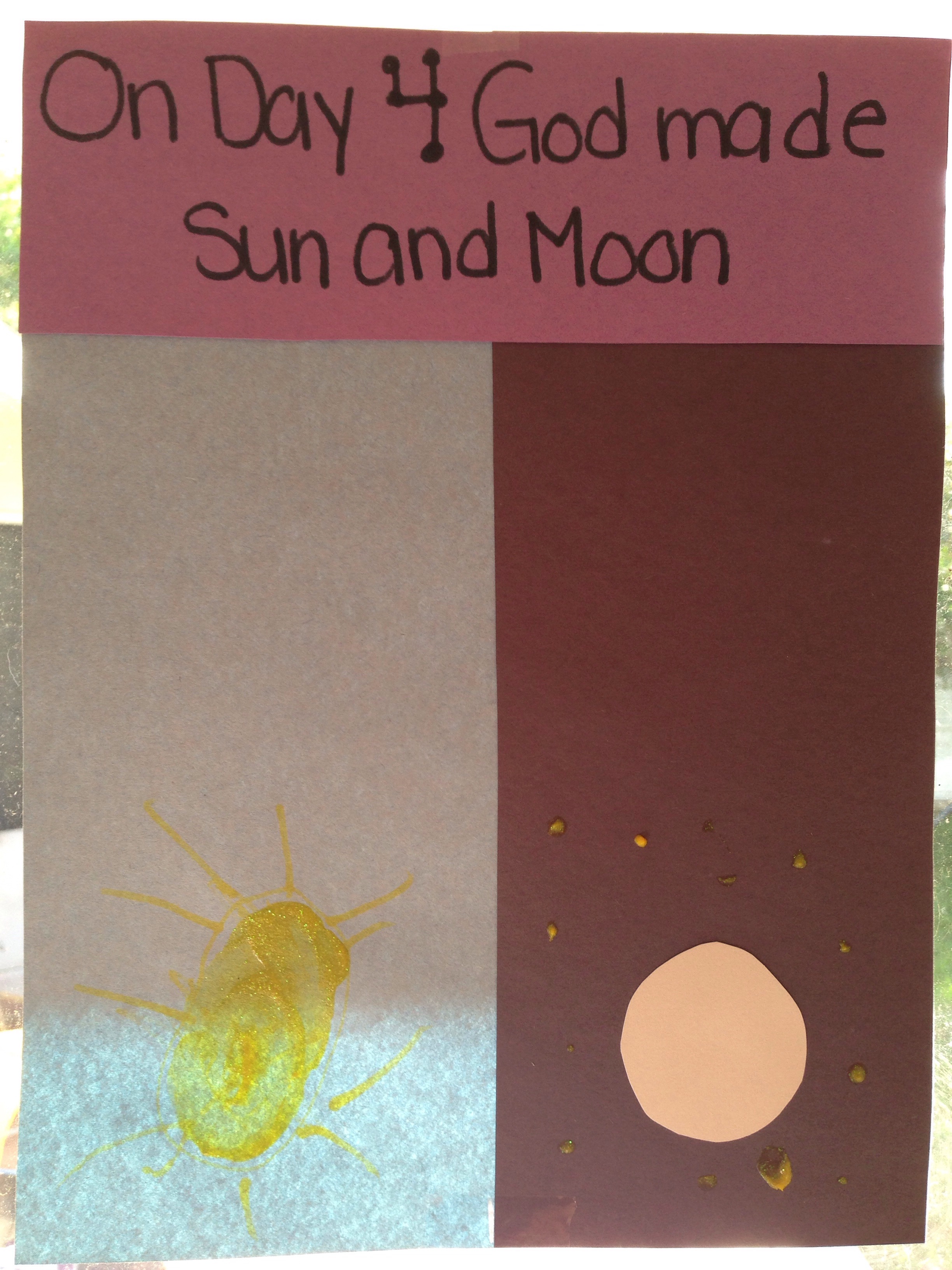 We are a little behind in our bible study but that’s ok, better to grasp it than to rush it I think. So this week we continued talking about the creation story and did a craft for day 3 and 4.