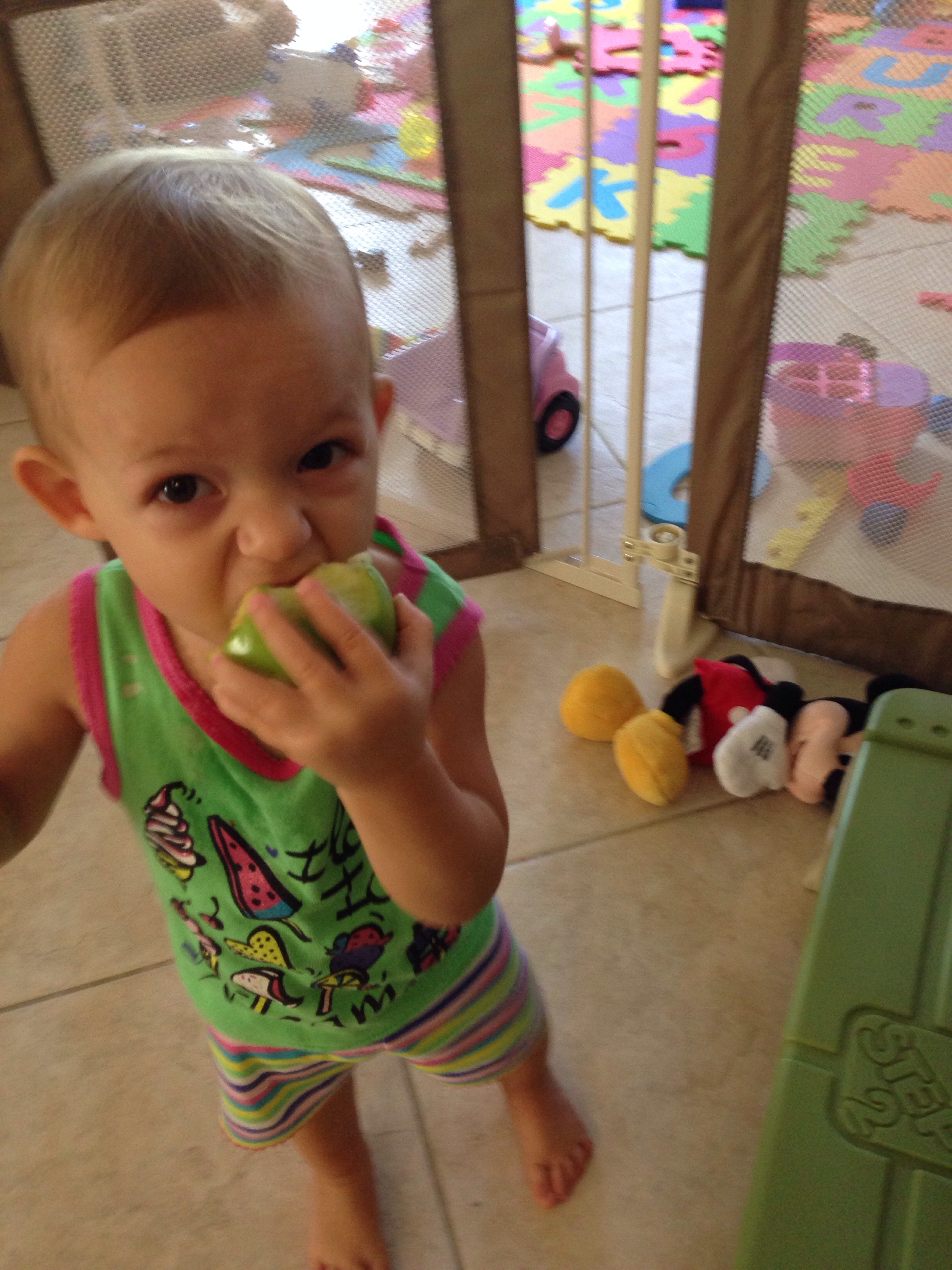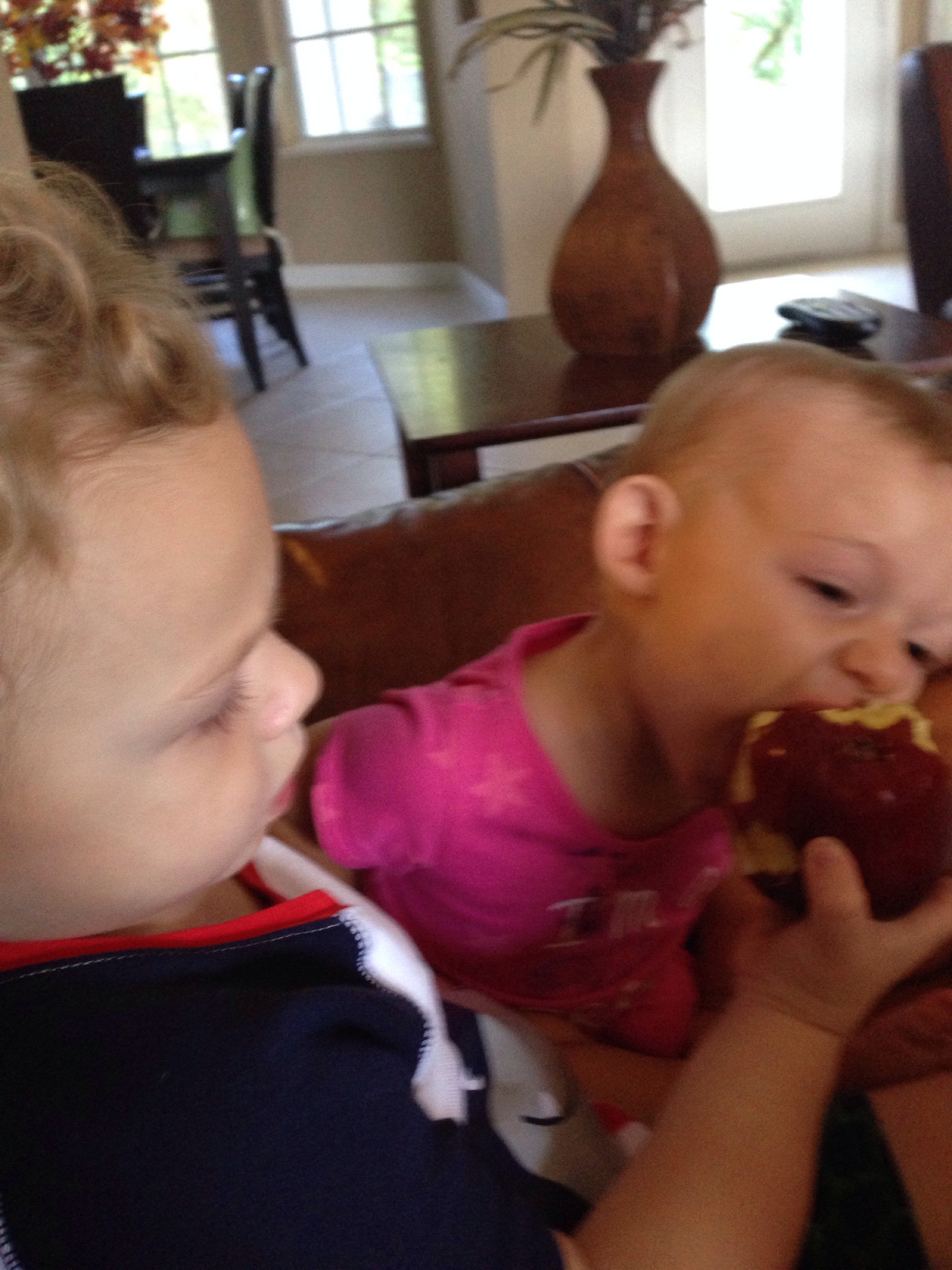 Now I’m embarrassed to admit but my kIds have never eaten apples. I guess I just always thought they were too hard for them to eat. Well I was wrong, way wrong! Both kids begged to eat apples every day this week. And there goes little grace walking around eating a whole apple like she’s big.