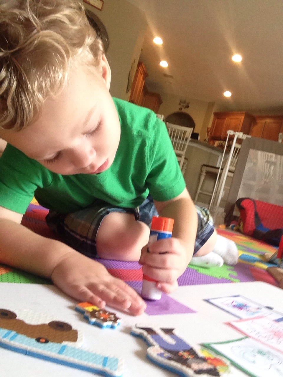 He colored his Z treasure piece and glued it to the treasure map. This boy loves glue and he’s actually great at it. And he’s starting to color inside the lines!