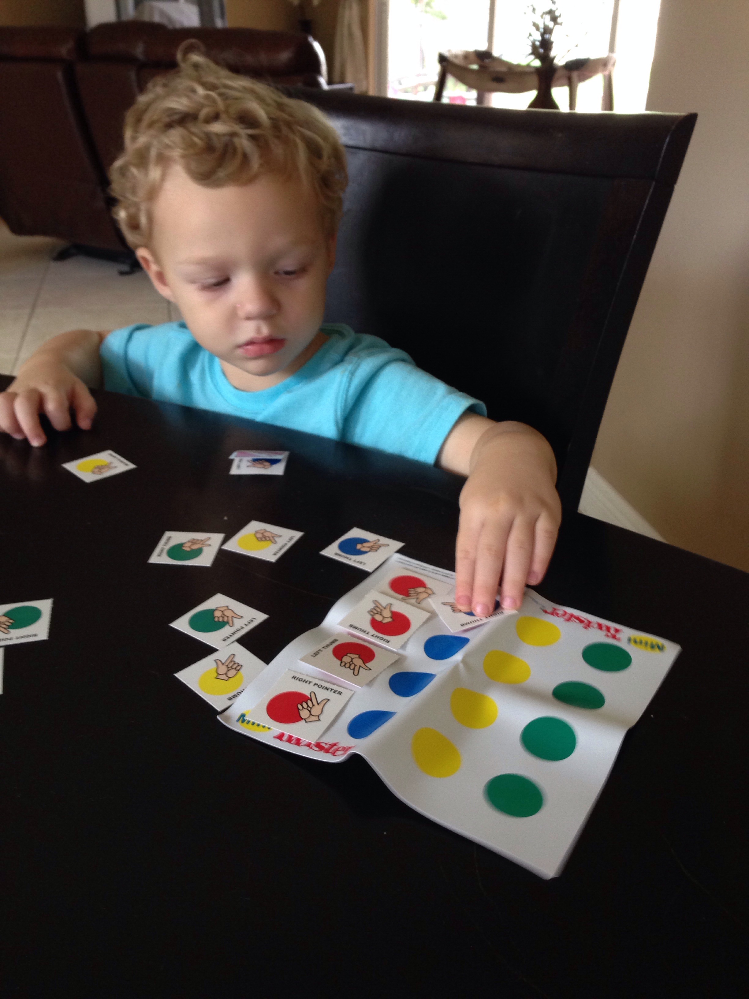 I have this mini twister that we used to review circles and colors. Then we turned the cards over and played memory basically.