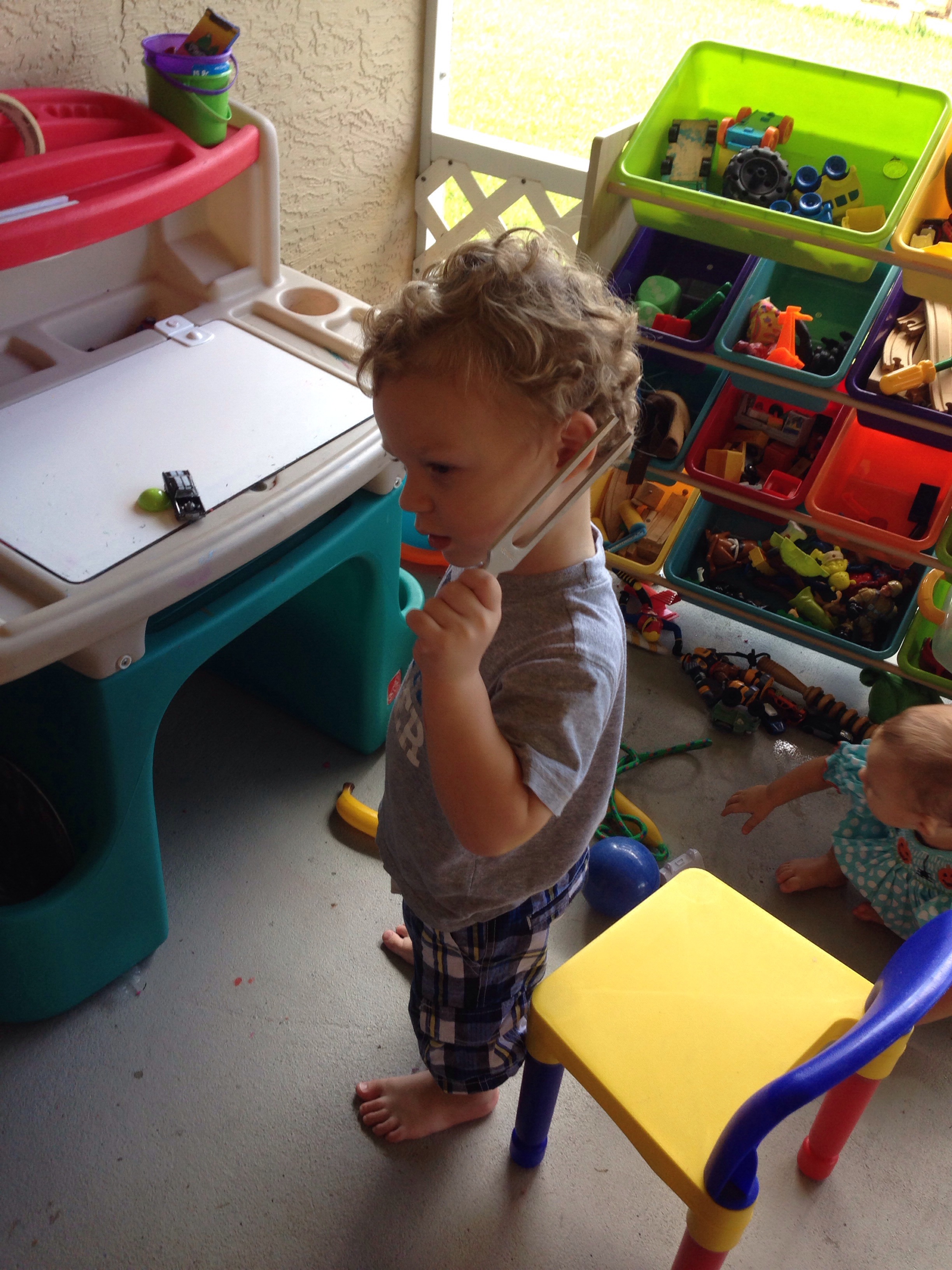 We played pretend zoo and Timmy and Grace were my caged animals 🙂