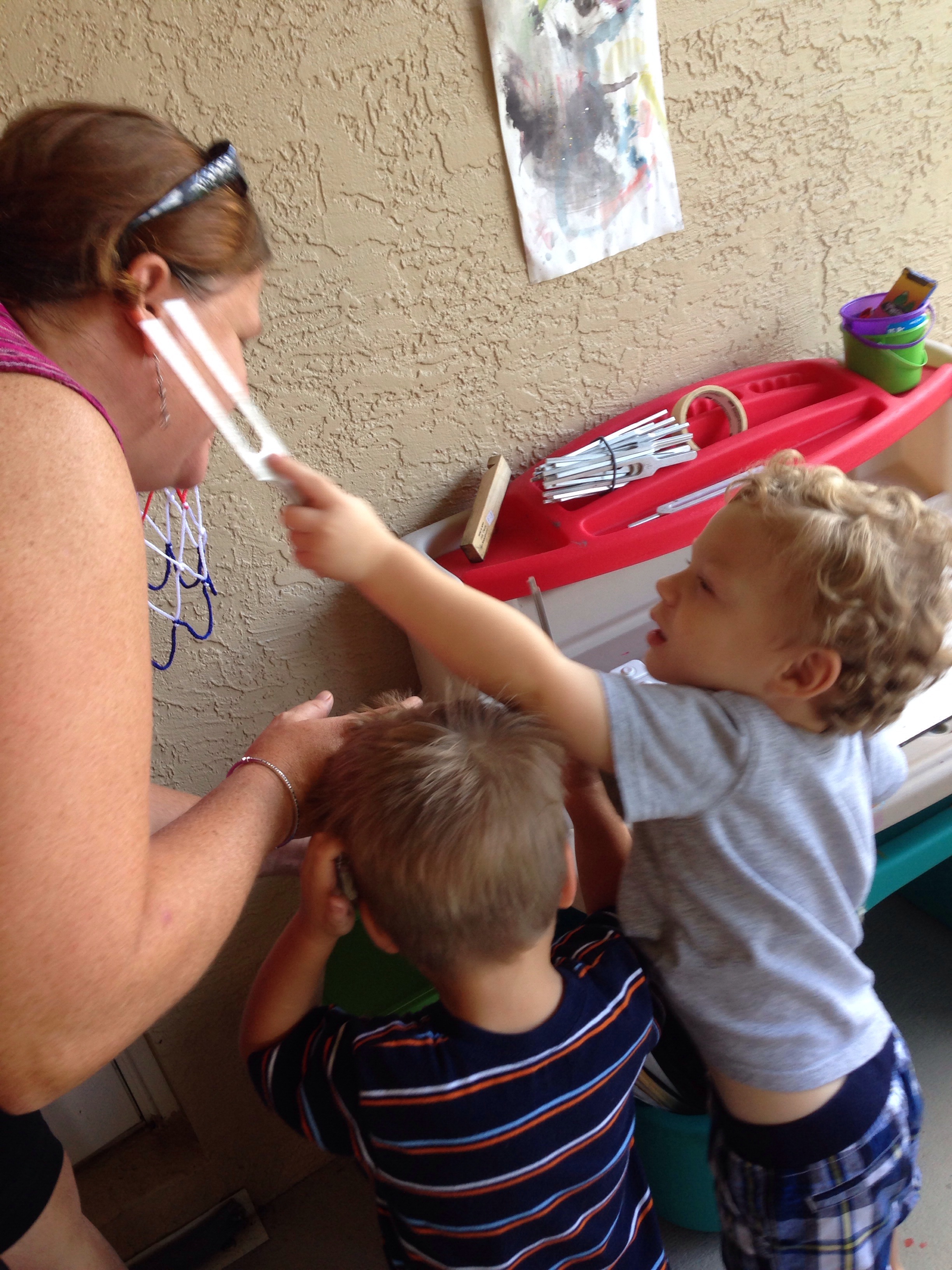We used tuning forks to learn about sound. I wasn’t sure Timmy would like this because he has sensitive ears but he really liked it.