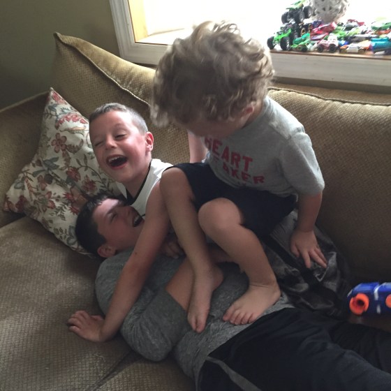 While Daddy works in Jersey we are spending time with family on Long Island. We are staying with my cousin and her 4 kids. I knew she was a little nervous about entertaining us for a week but little did she know all we needed was a couch and coffee. My kids and her kids were in heaven playing with each other. I rarely heard from my kids the entire trip. The played hard and slept soundly. Even their enormous dog was in the mix.