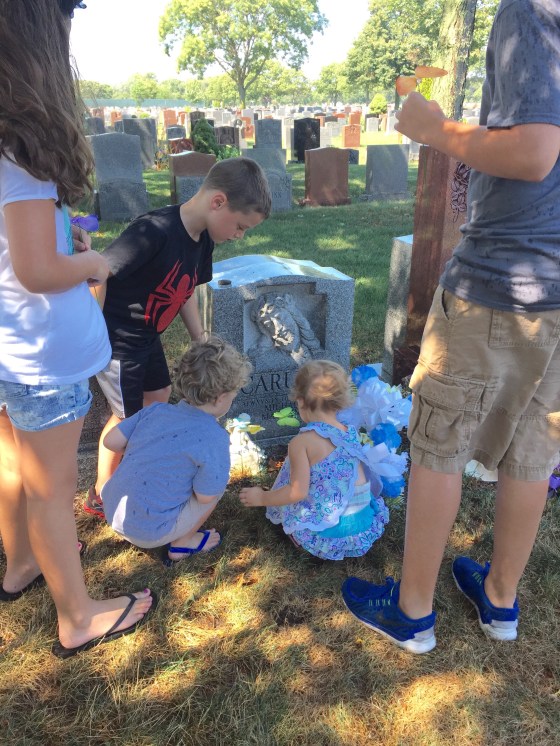 We took our kids to visit our Great Grandmas grave. Each kid gave her their favorite color butterfly. And then we got hit with the most powerful sprinkler ever created. Apparently it was watering day. Me and Keri were convinced that was Nanny telling us to bathe our children because honestly there was not a lot of that happening since they were playing so much and passing out every day.