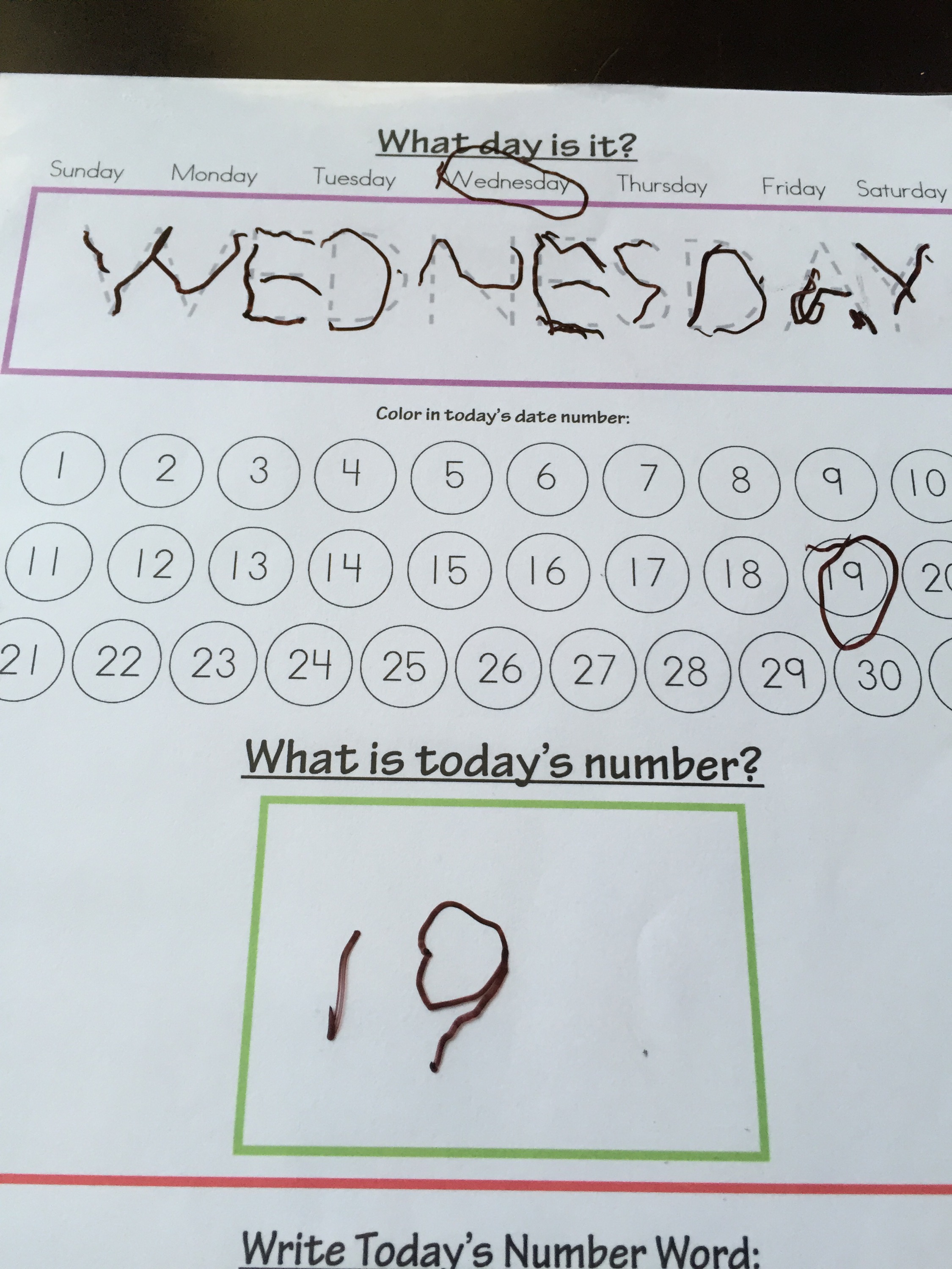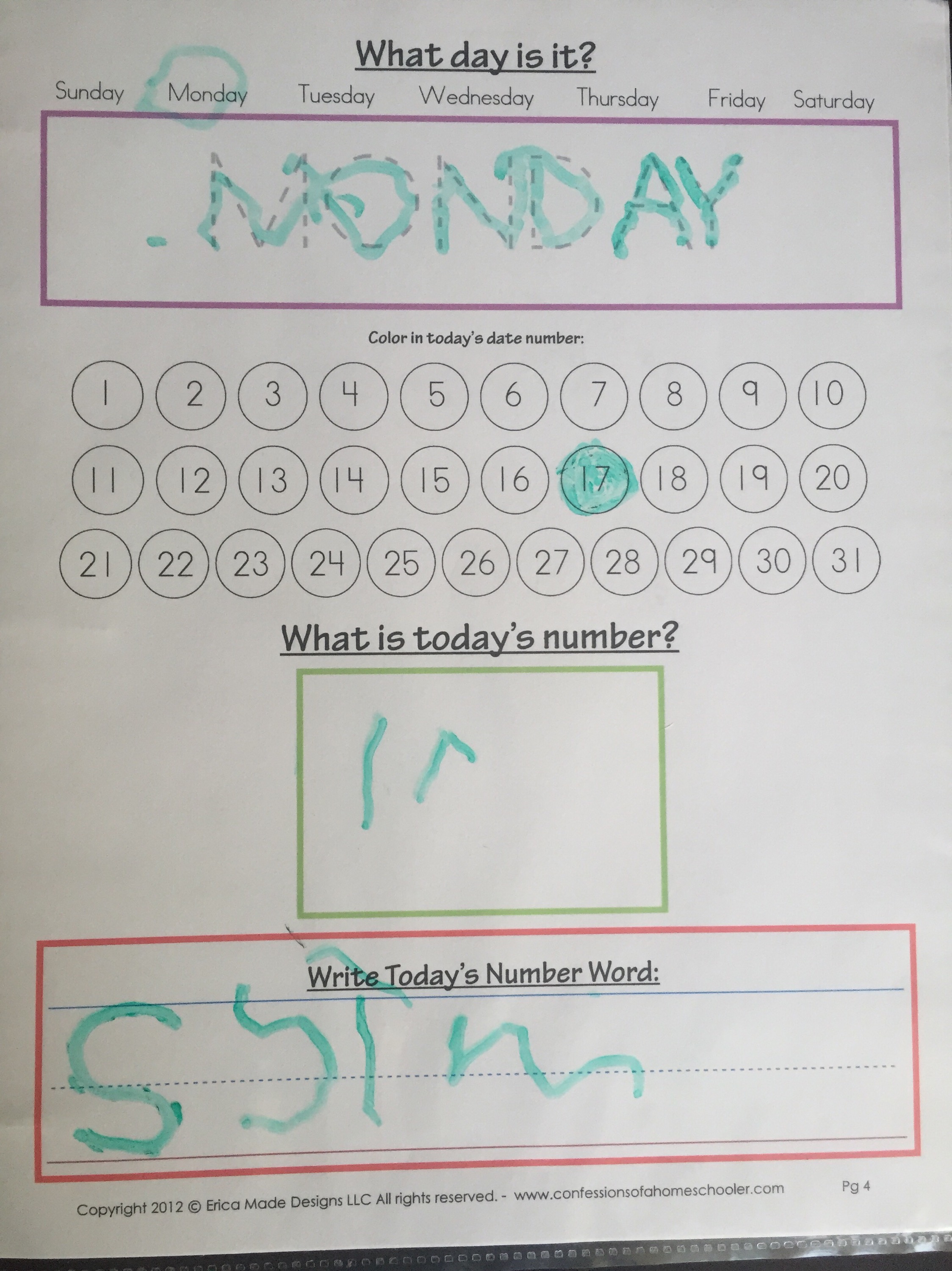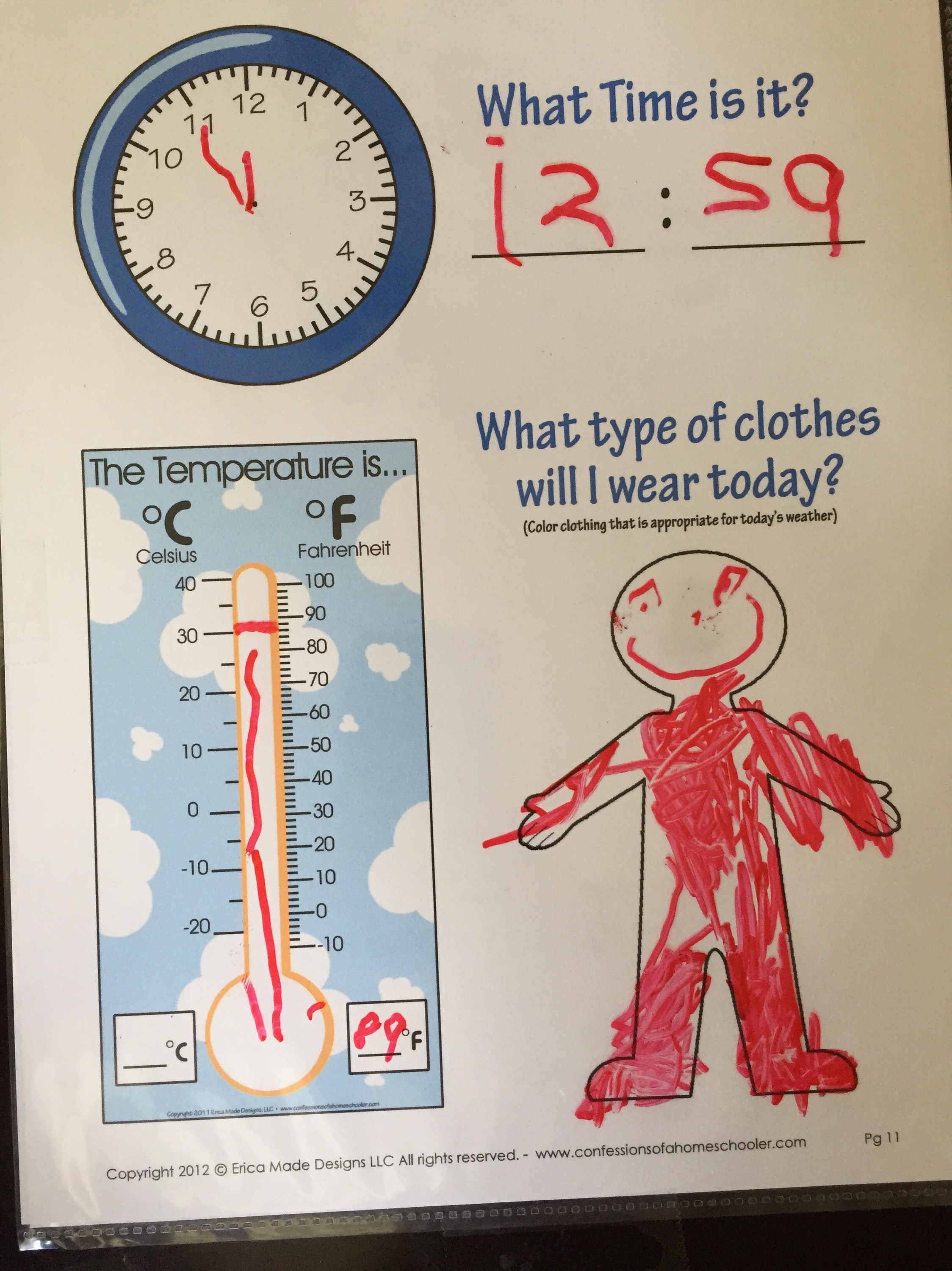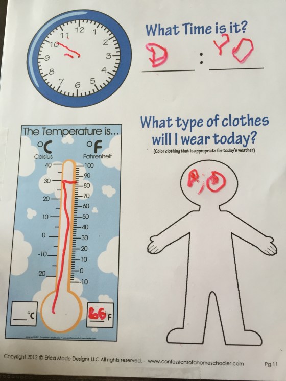 Next we did our bible verse, calendar and weather.
