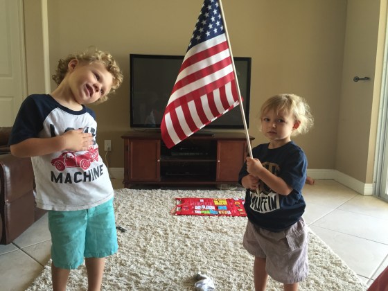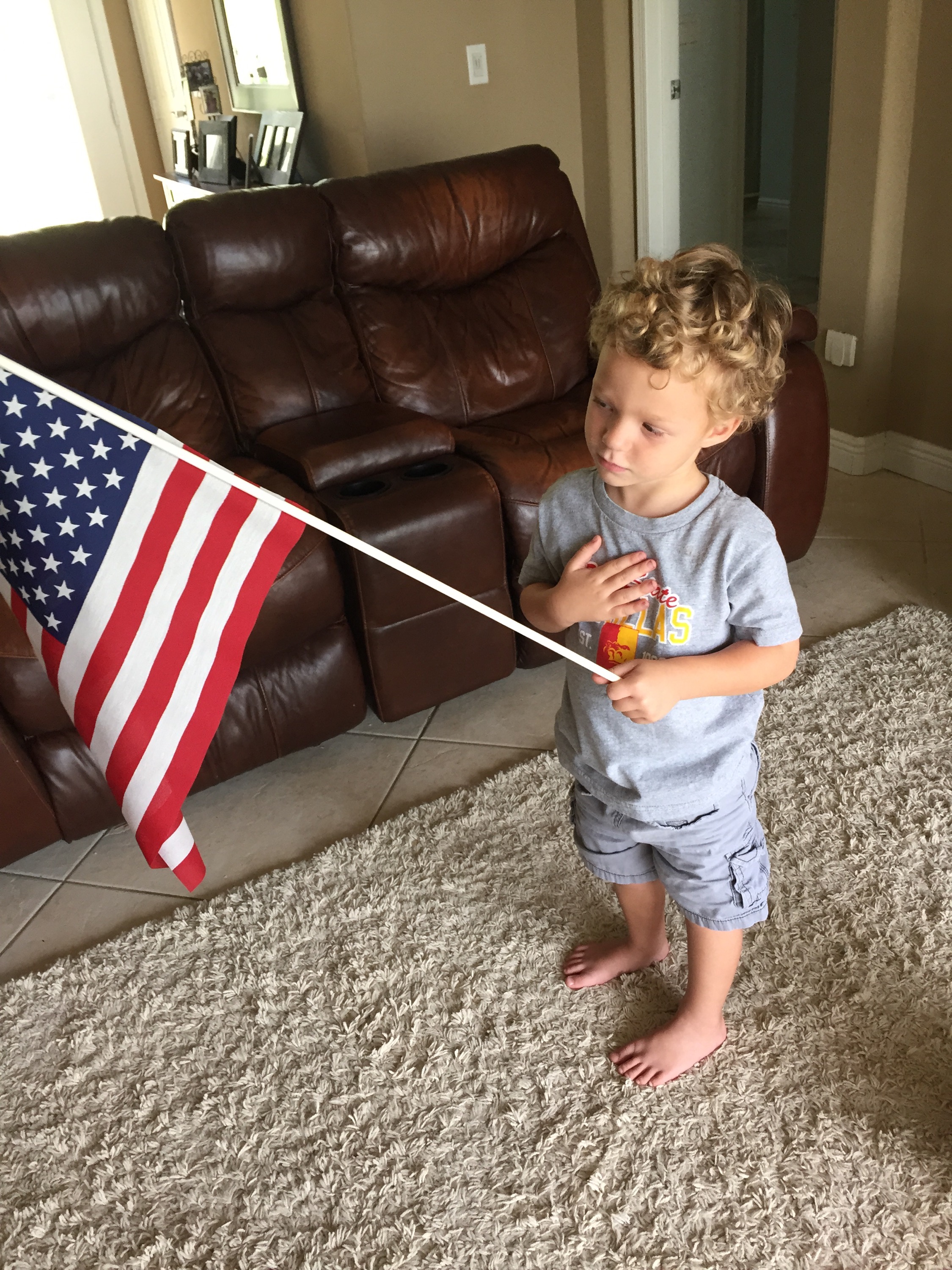 We started each day with the Pledge of Alliegence. And it was so precious. We took turns each day on who would have the job of holding the flag and hearing them mispronounce all the new words of the pledge was so cute.