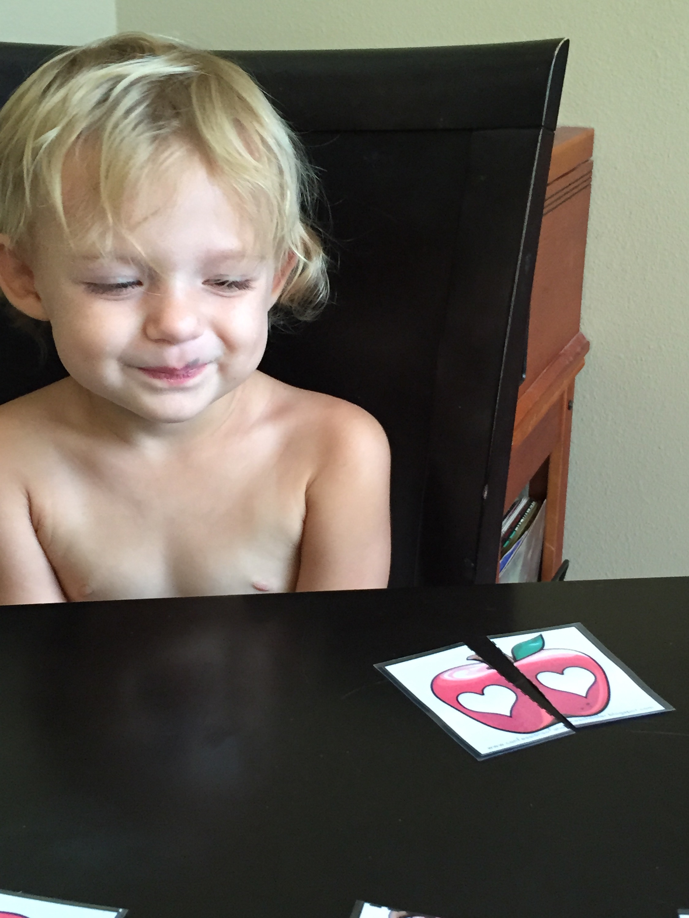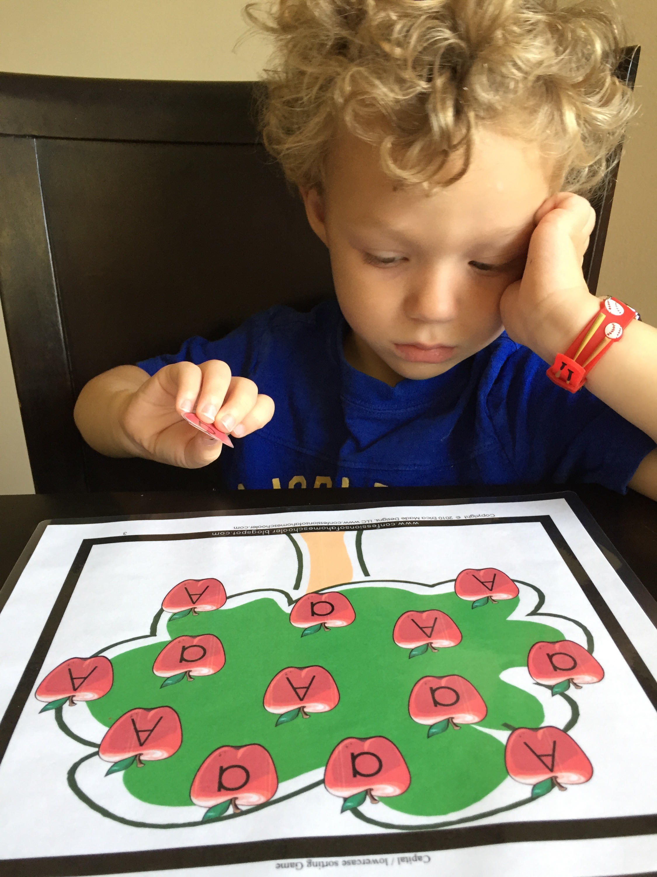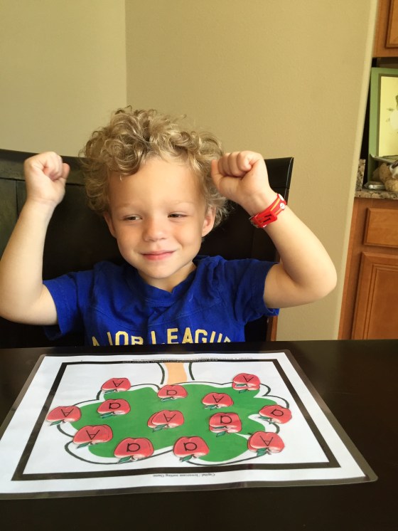 This was serious work and a little hard for him. He had to match the lower case and upper case. He was so proud when he was done.