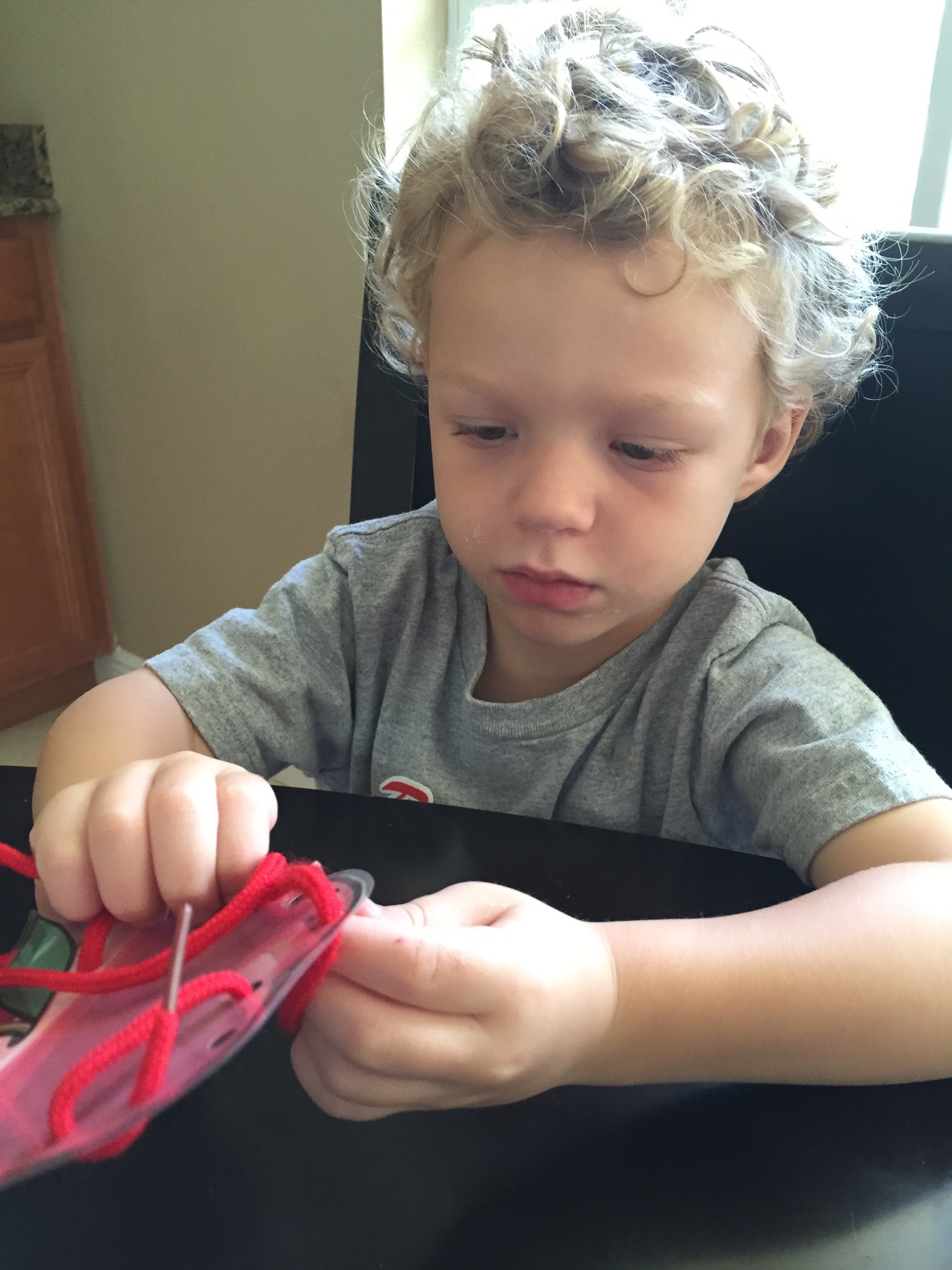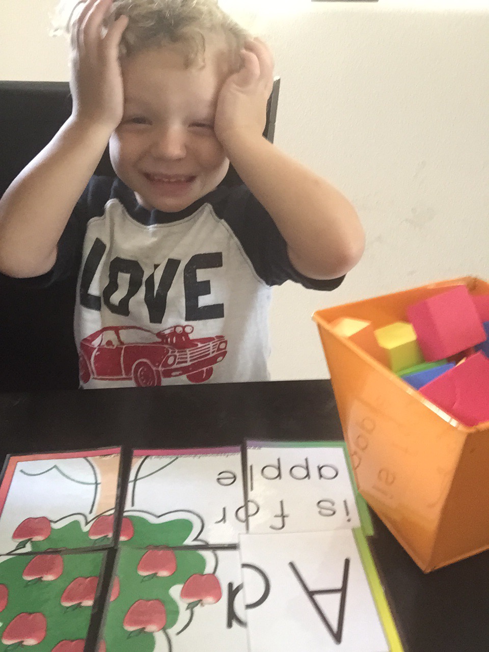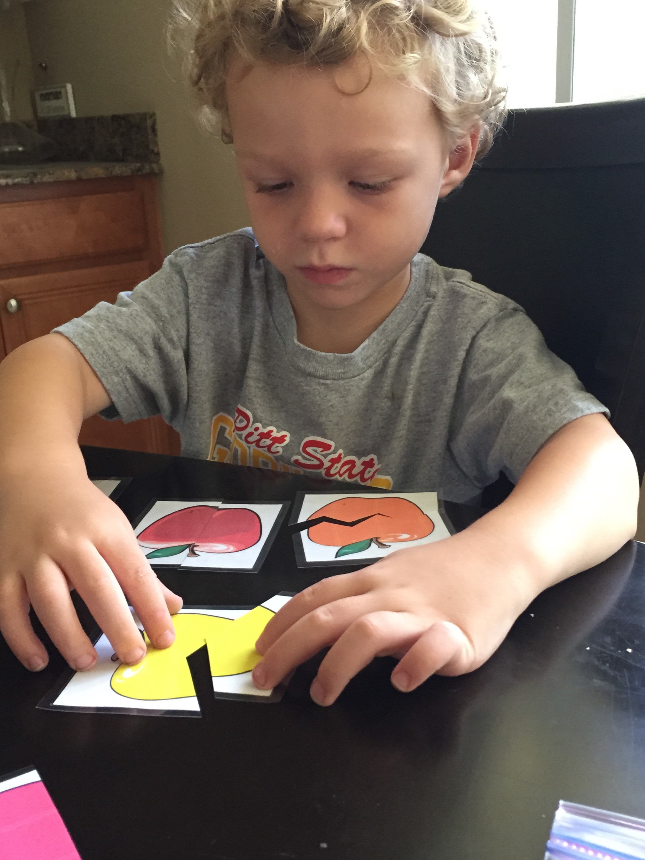 This was serious work and a little hard for him. He had to match the lower case and upper case. He was so proud when he was done.