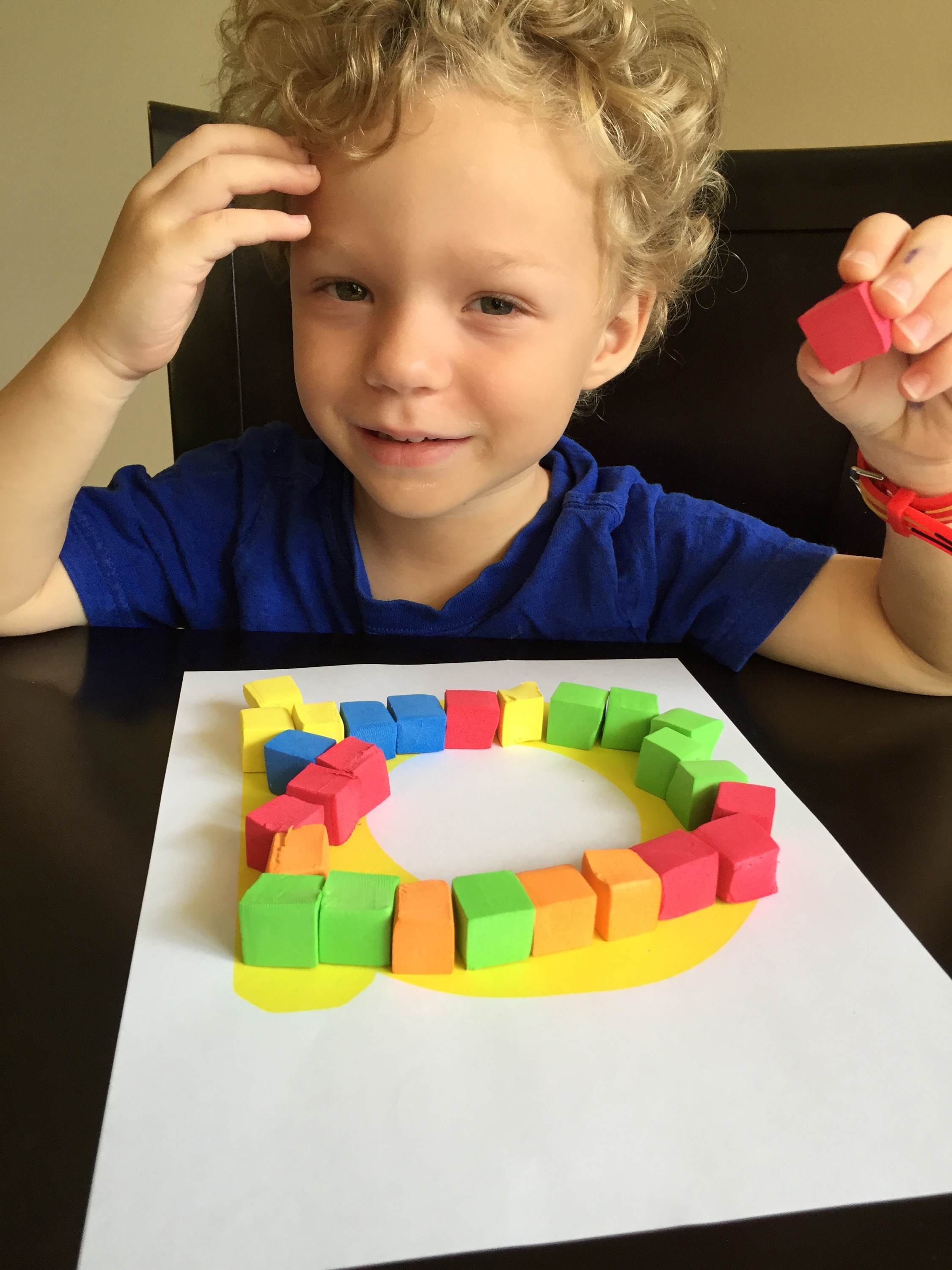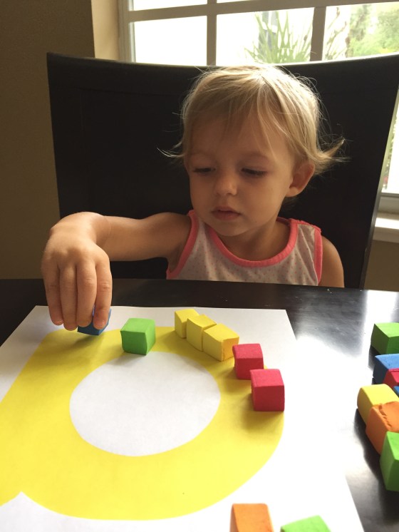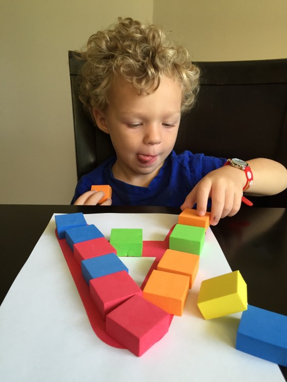 Making block letters they liked. I found these color cubes in the dollar section at Target.