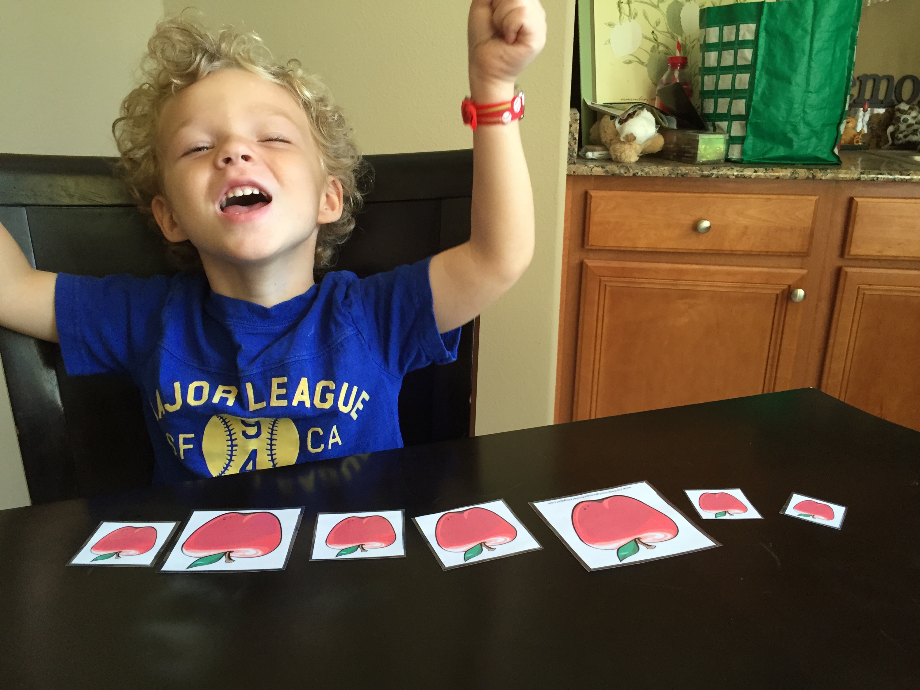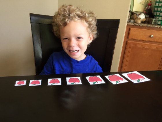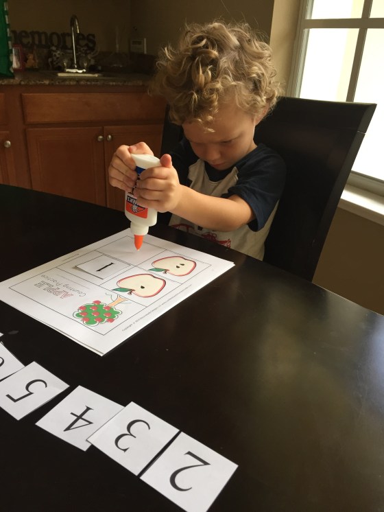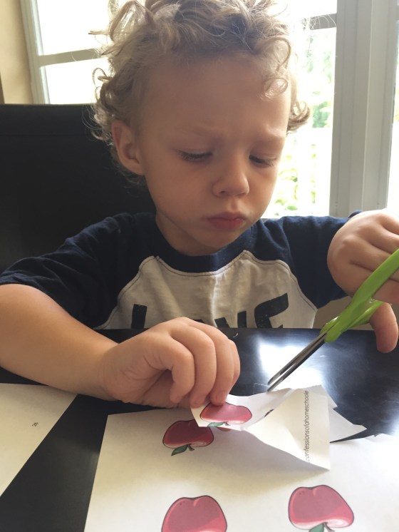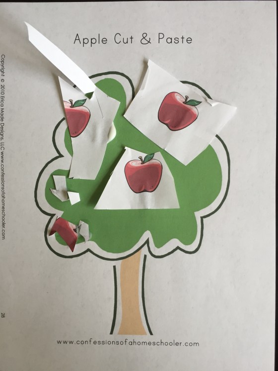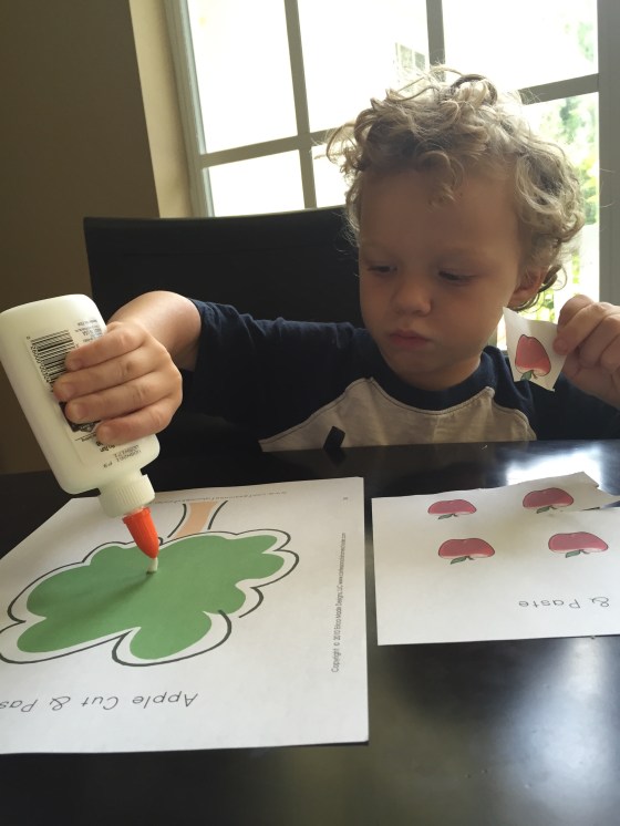 Here he had to cut out the apples and paste them on the apple tree. Honestly I didn’t think he could do this and he DID! I forget that he’s getting so big π’.