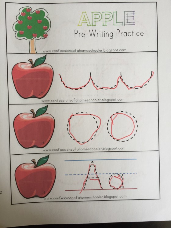 This week we read Ten Apples Up on Top because it worked perfect with our Apple theme. They had so much fun trying to act out the book. I plan on starting Before Five in a Row in January as a literature supplement for Grace once I get a good groove with Letter of the Week curriculum.