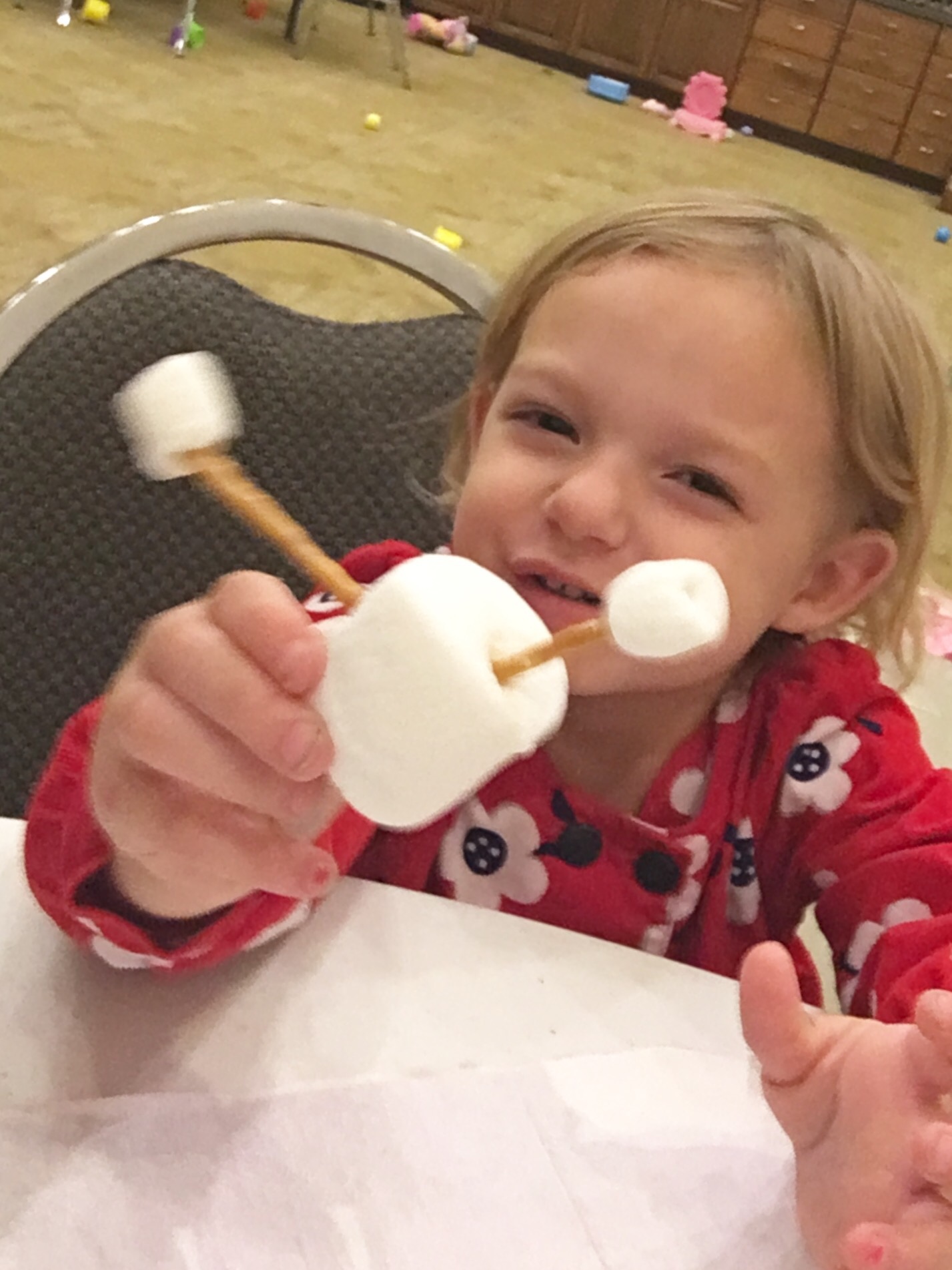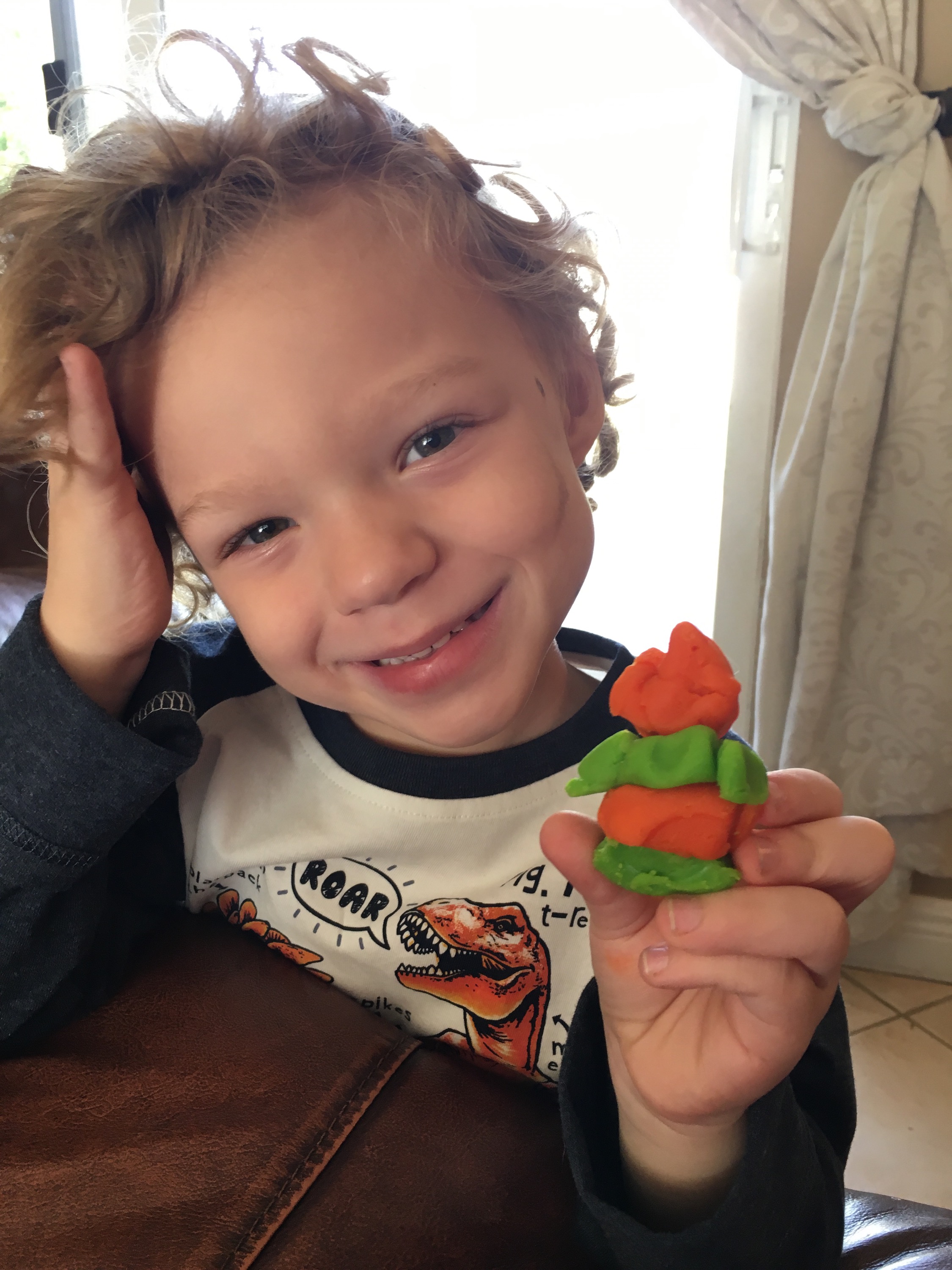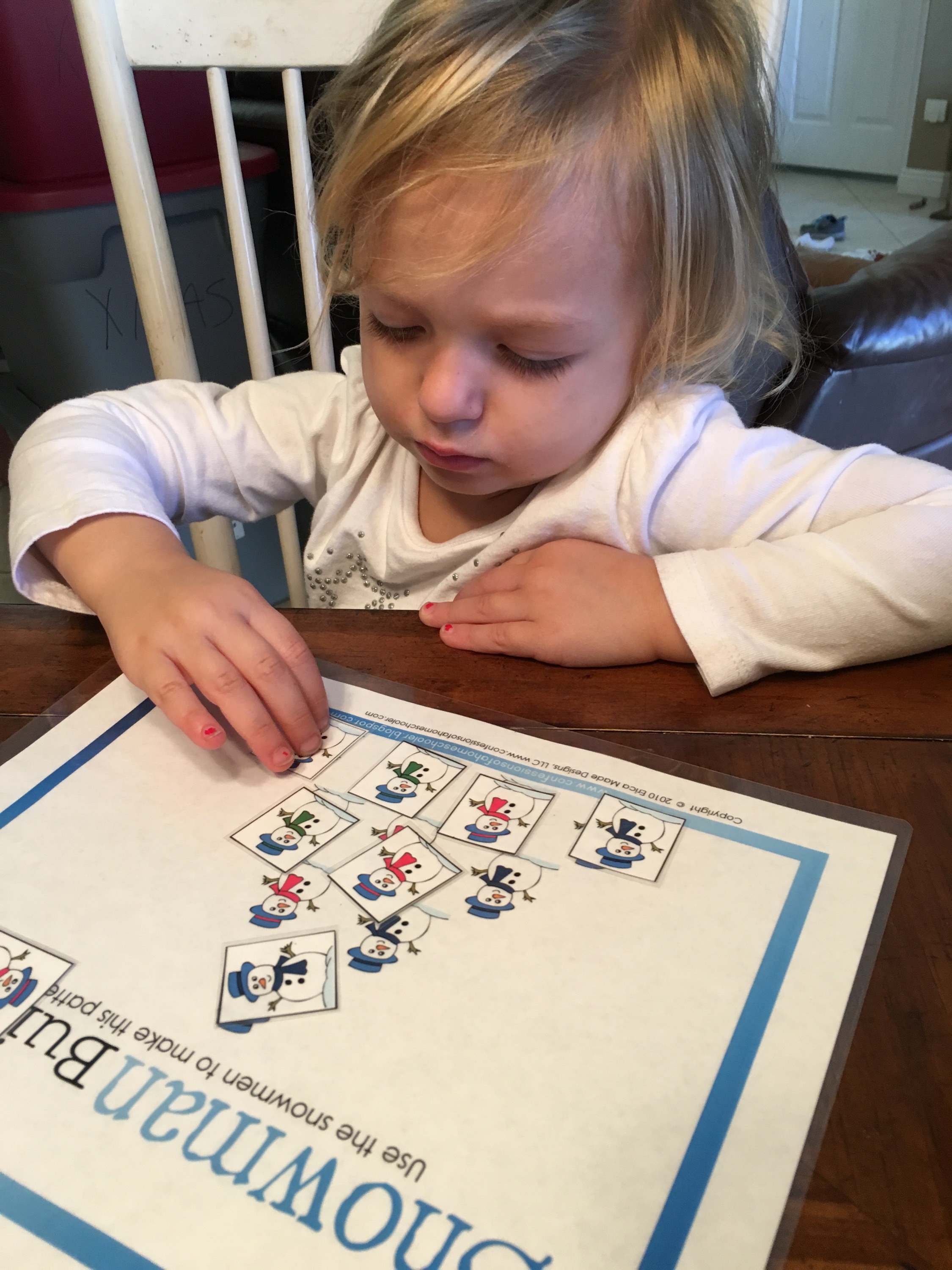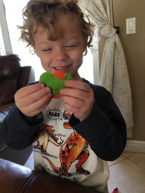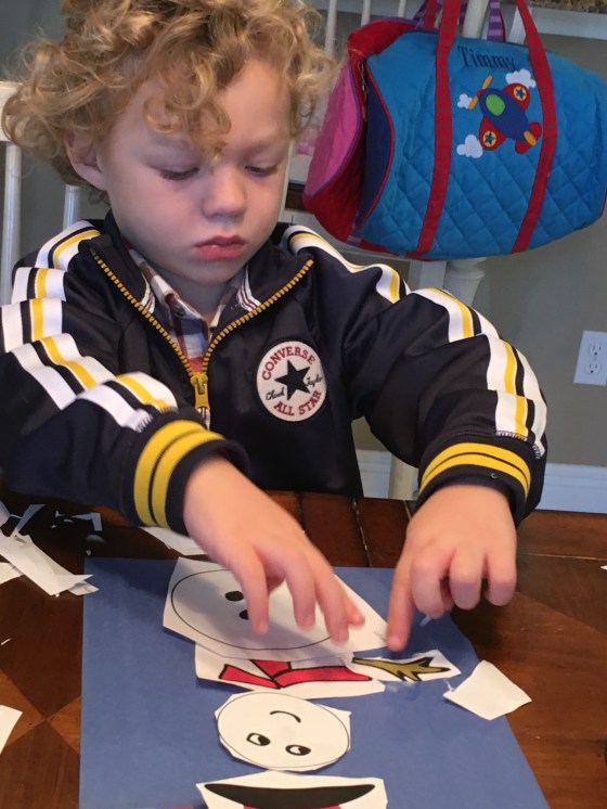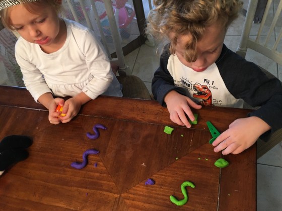 We took out some play dough and they are making all kinds of things. Letter S, snowmen, melted snowmen, hot dogs and pillows. It’s very busy.