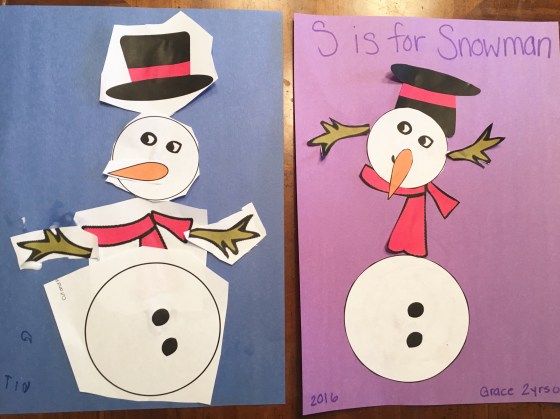 S is for Snowman! It feels so good to be back in our homeschool routine and out of holiday season. Everyone is happier when there’s a schedule. And the kids missed school.