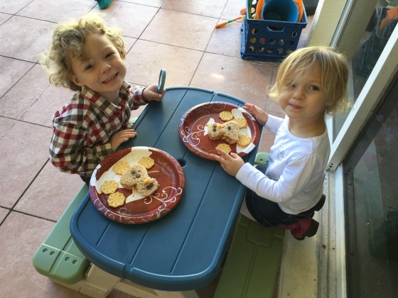 We went outside and played some soccer and they had a picnic lunch with my not so perfect snowman sandwiches.