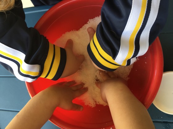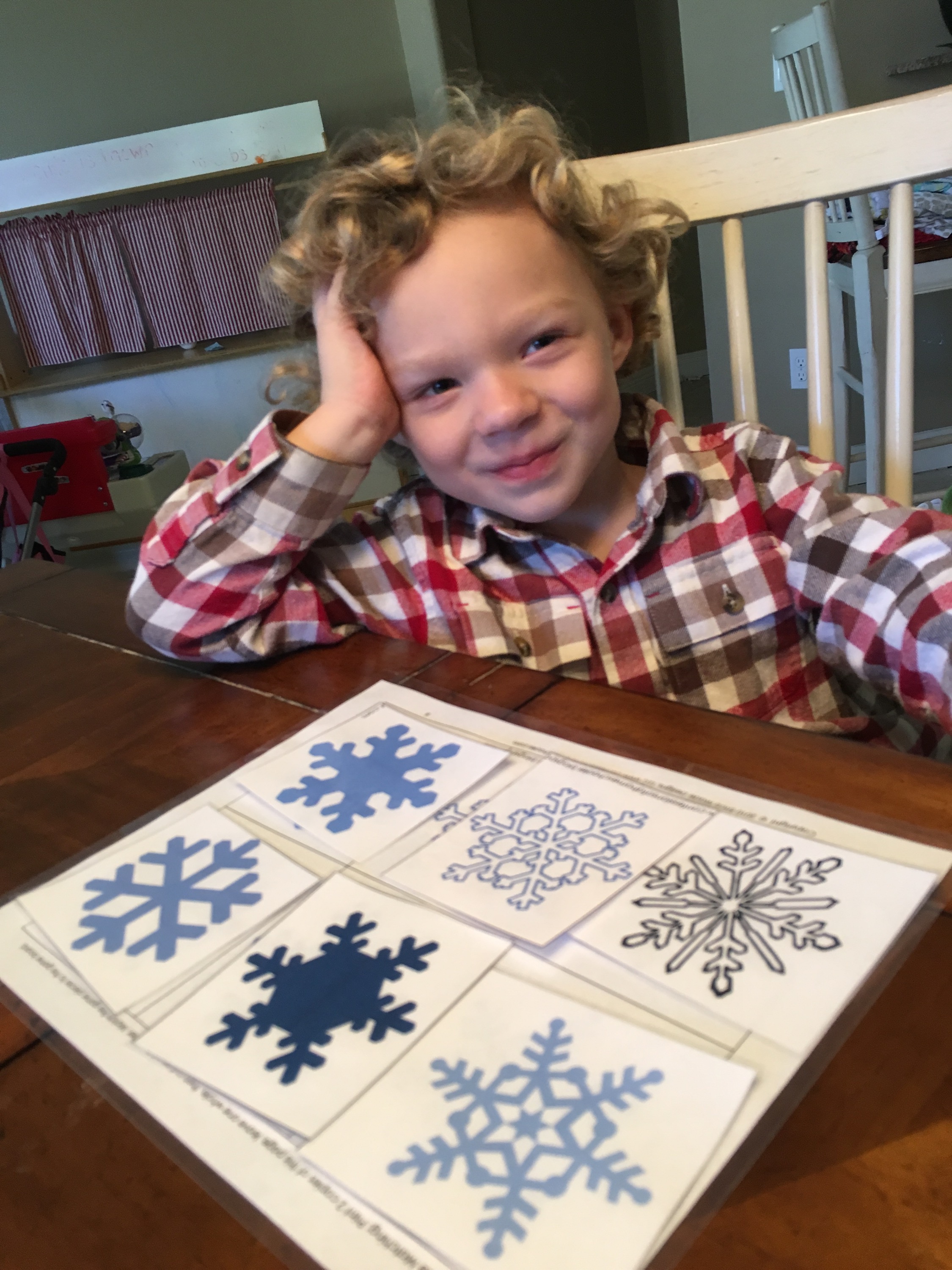We made snow today. Technically it’s a new week and we should be moving on to our next letter but it’s actually very cold today so we had to give it one more day.