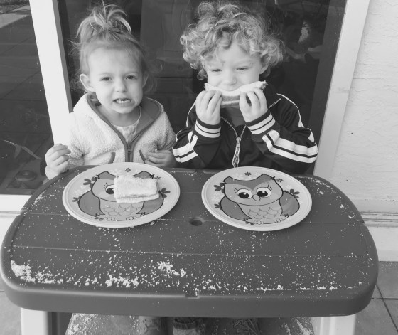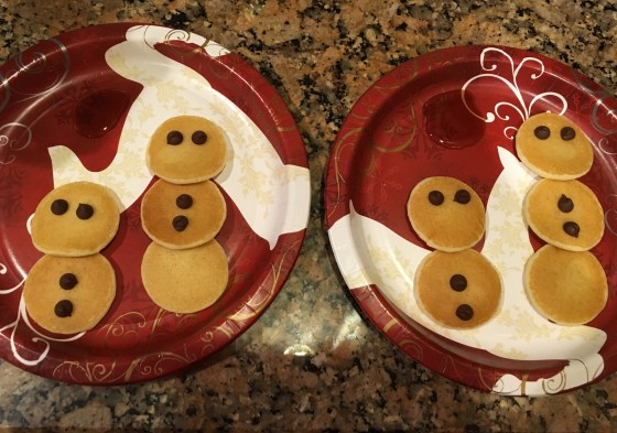Tuesday we had snowmen pancakes. My food art is clearly lacking but these kids love it. Timmy says wow mom you are so sweet.