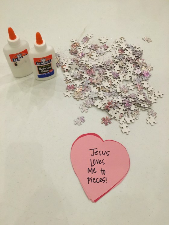 For church playgroup our valentines party was all about how much Jesus loves them. We played the “Jesus Loves Me” song and made this puzzle piece craft.