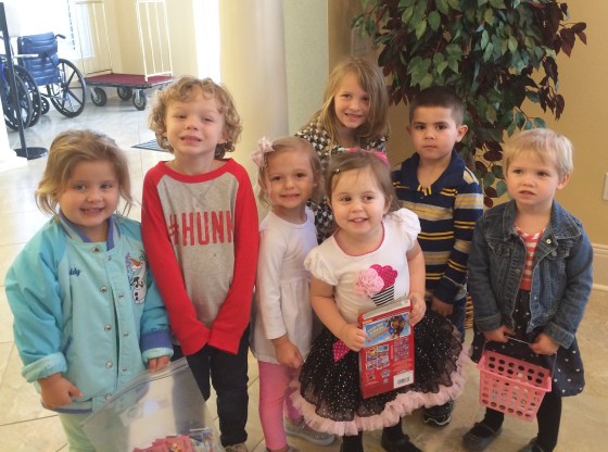 Yesterday was Ash Wednesday. We went to mass with our playgroup friends to get ashes and then we went to the nursing home to hand out Valentine cards.