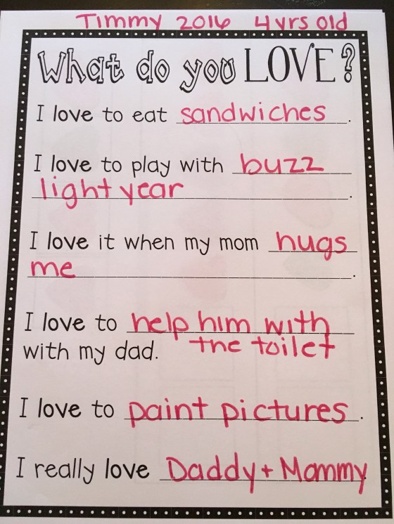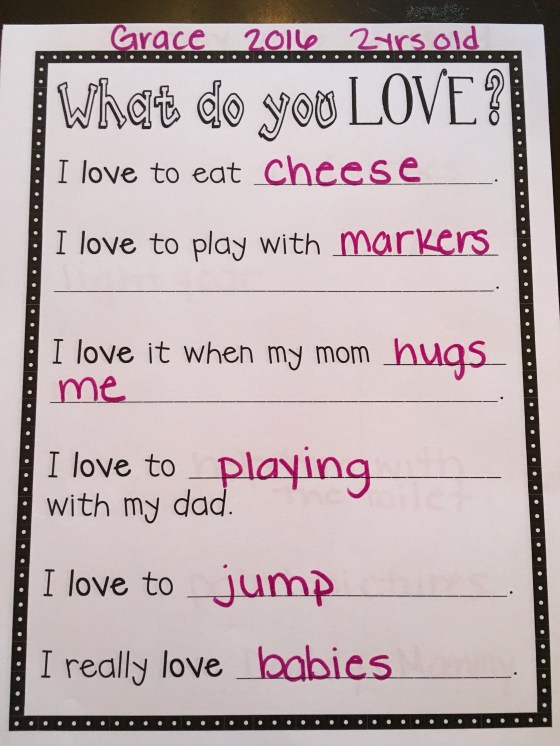 We filled out a worksheet about what they love. I’m gonna try to do this every year.