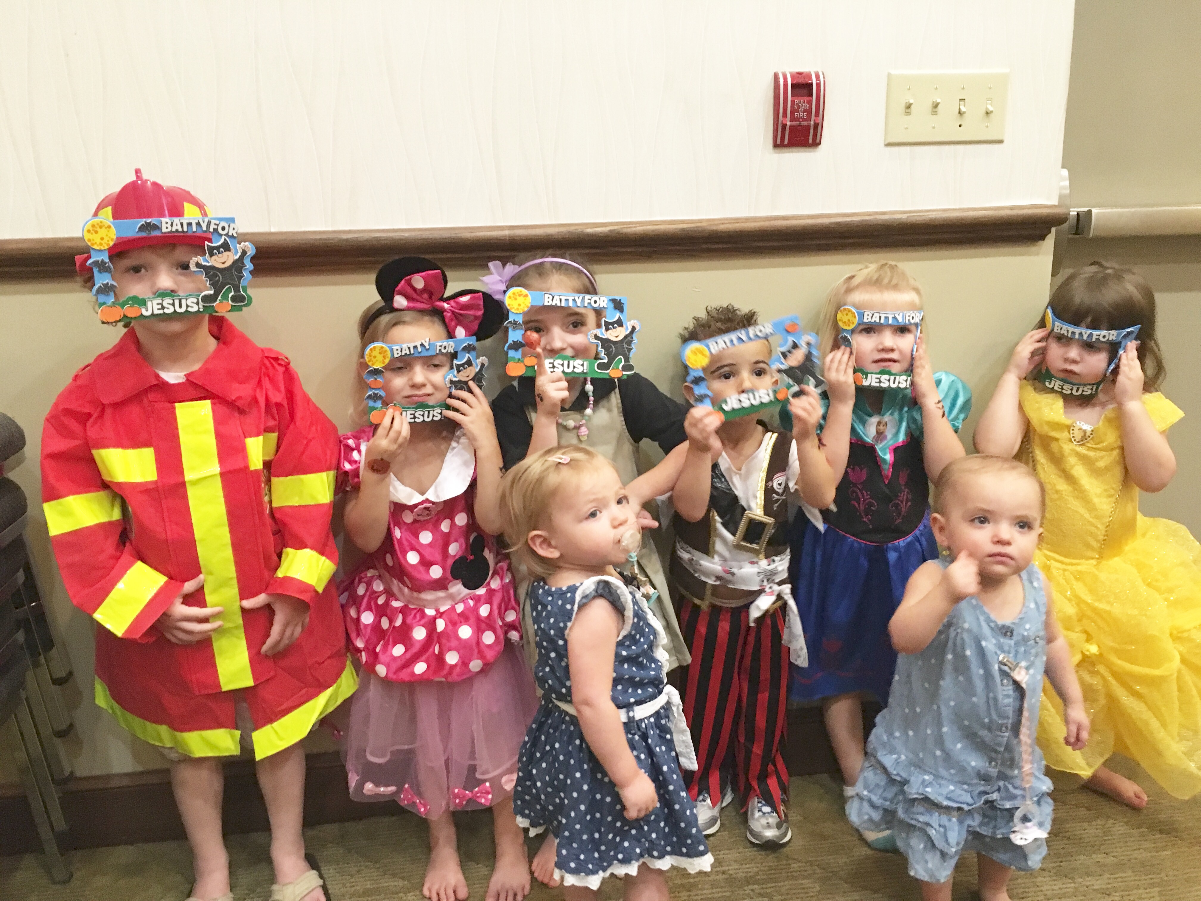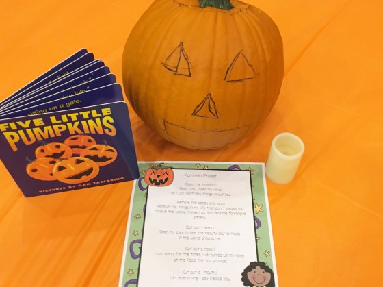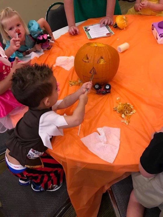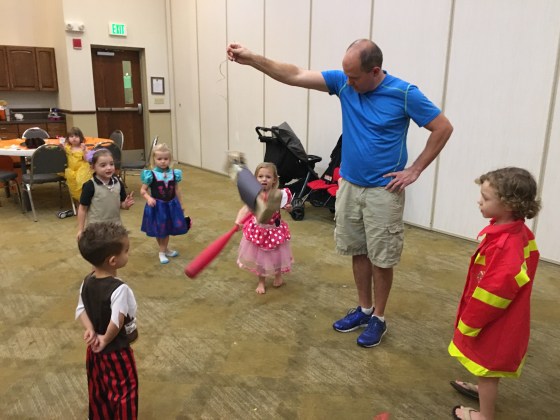 Then we celebrated with our church play group. We did a pumpkin prayer carving, a batty for Jesus picture frame, creepy mystery boxes and yummy spider snacks. Timmy even made a homemade pinata.