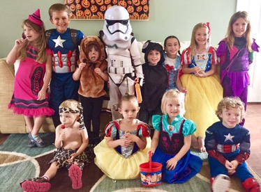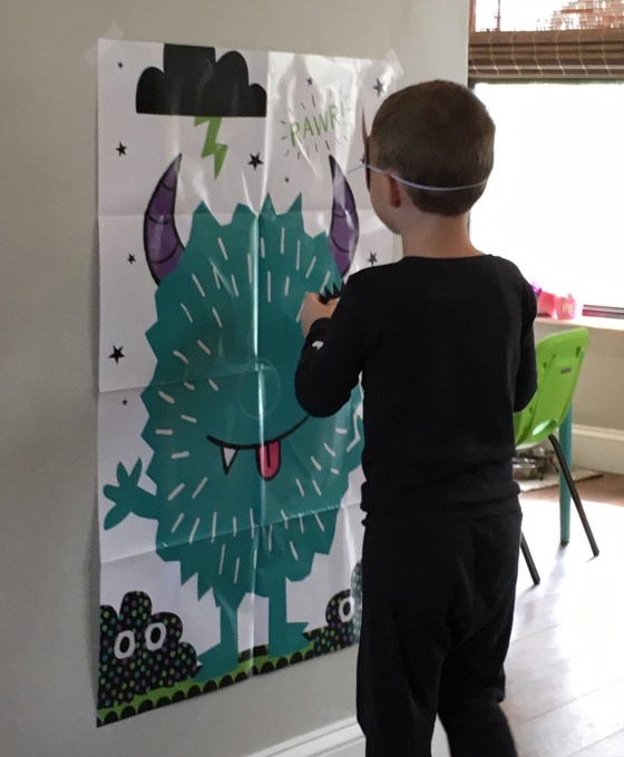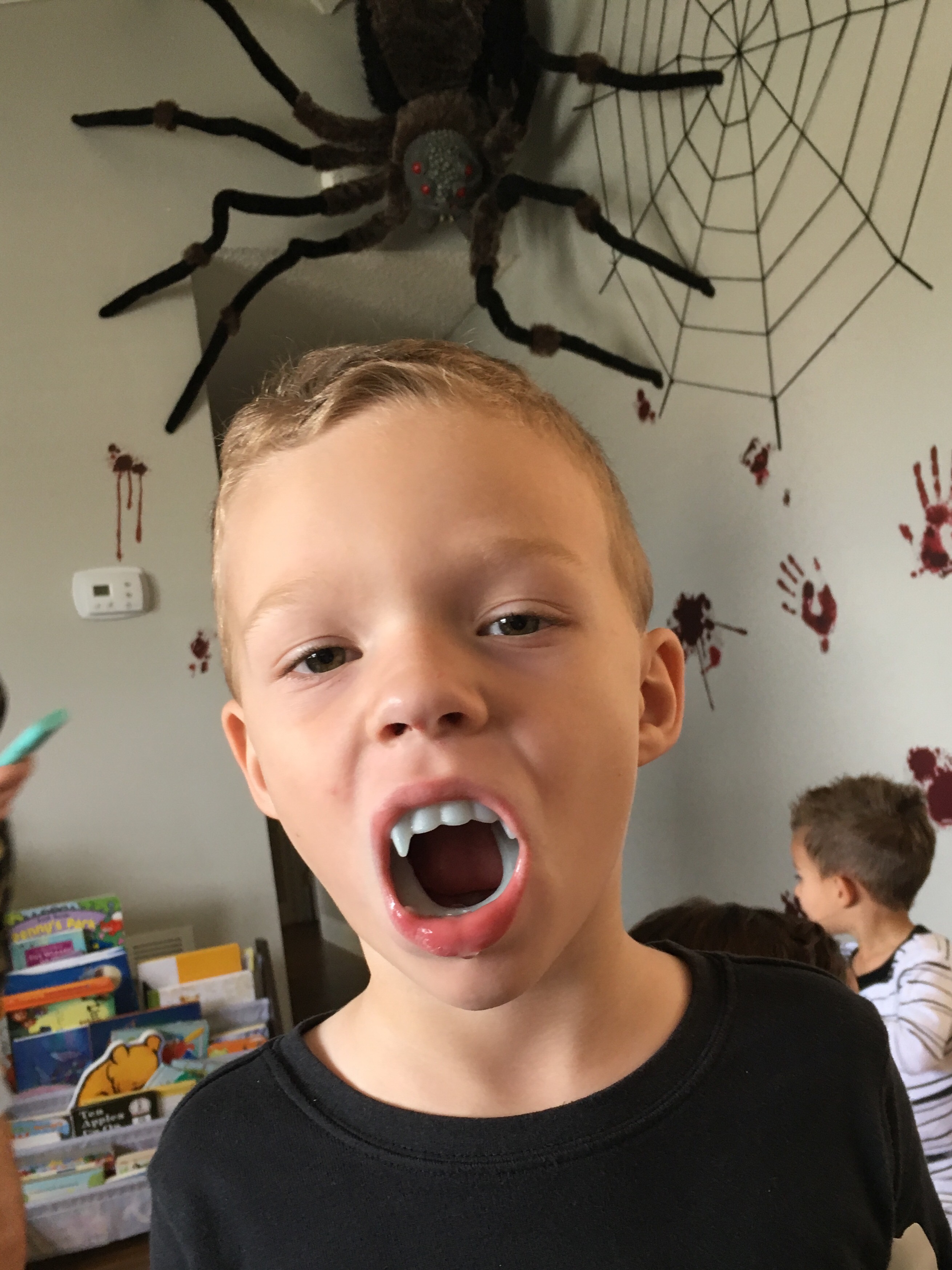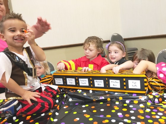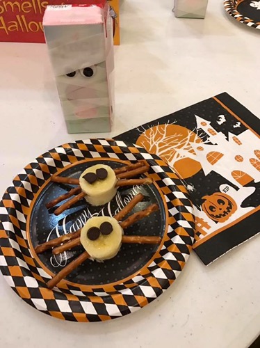 The kids had spider pb&js, they played pin the eye on the monster and they enjoyed some yummy candied popcorn with their spooky movie.