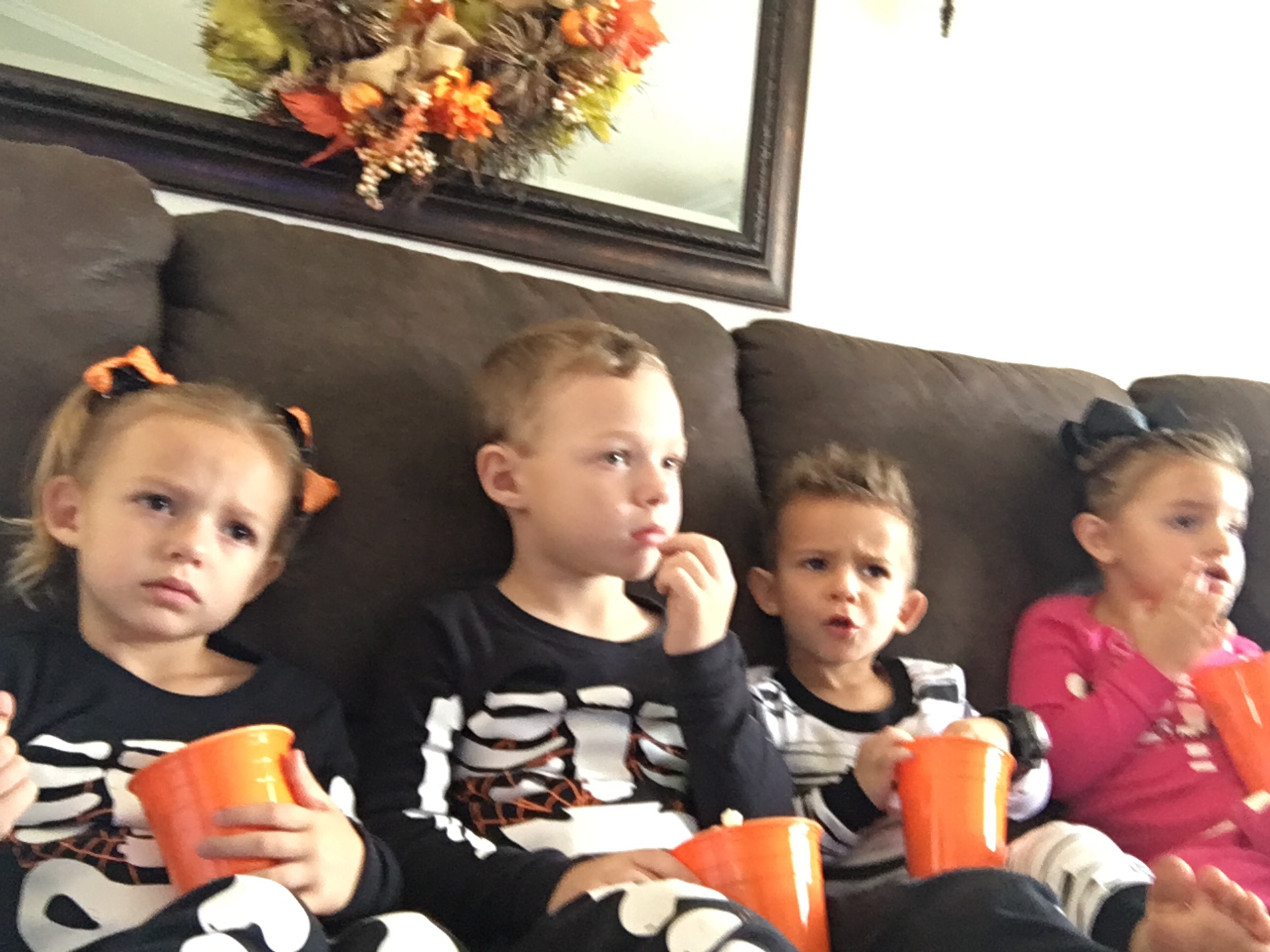 On Friday we had a halloween pajama party with Max abd Brynn. The kids had the best time. Of course we had some themed activities because we can’t help ourselves but these kids would be just as happy if we left them to play outside all day. They were black from head to toe when they came in the house.