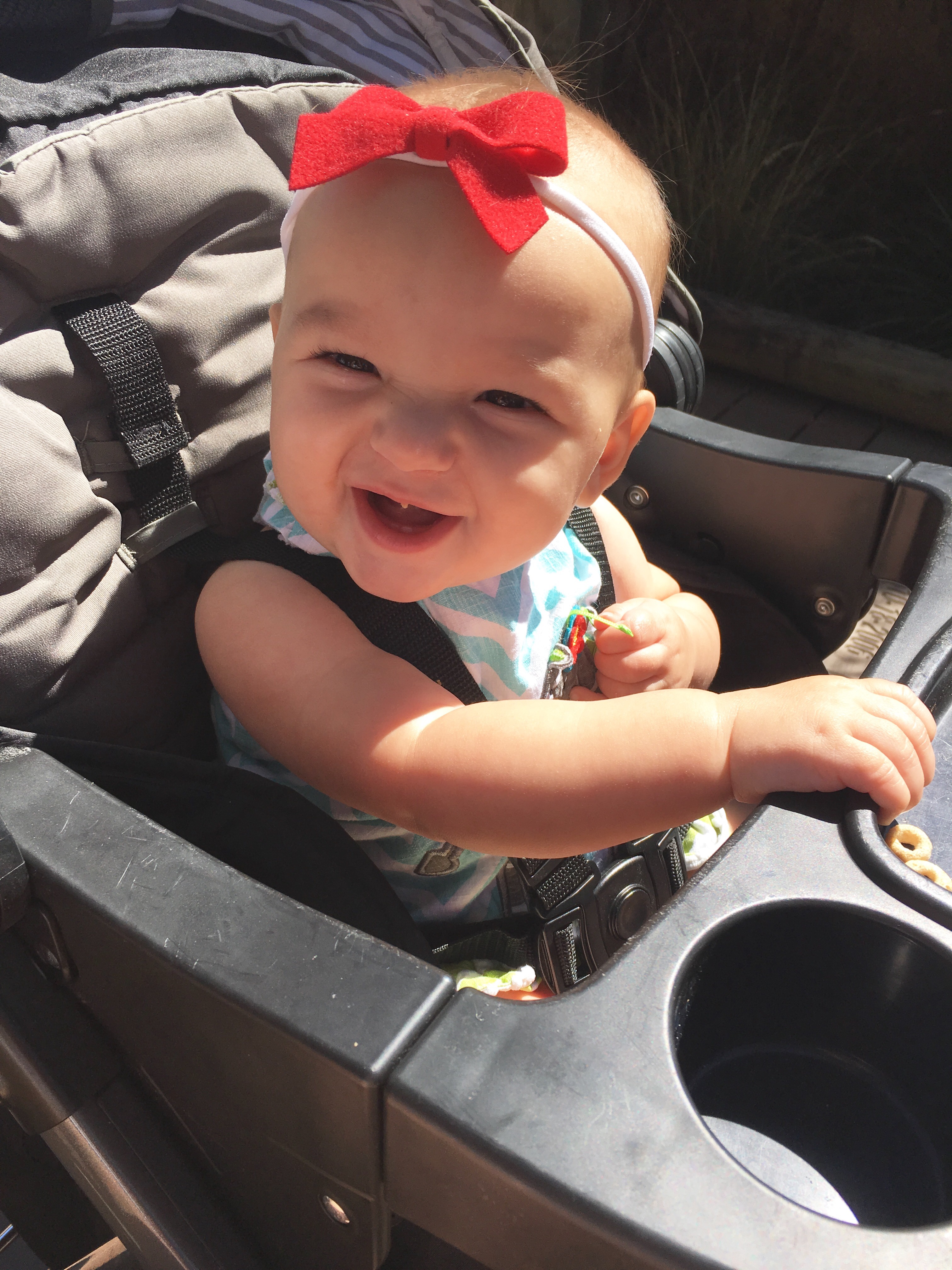 Seems like she’s learning something new everyday. Clapping hands was our biggest celebration it’s just so cute. She loves blowing raspberries and it’s especially fun with a mouth full of yogurt. She’s totally in love with food now. Anything and everything she chows down.