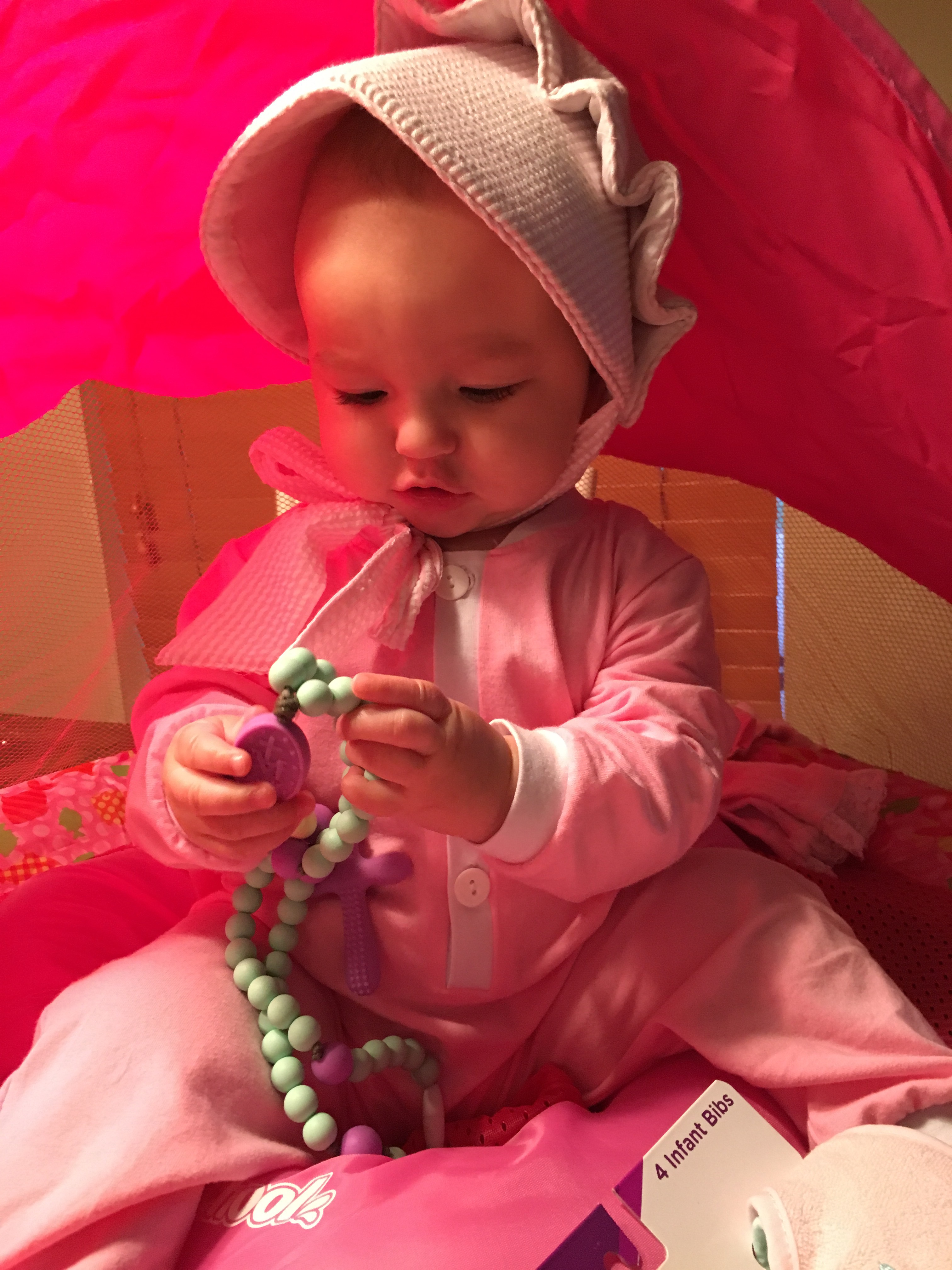We set up a baby zone in the playroom and she loves it. She plays so nice with her toys and Timmy & Grace go in and play with her too.