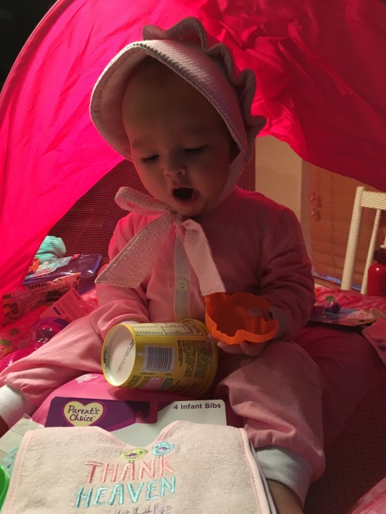 She loves driving in her little car. She naps in her swing still and sleeps with mommy and it’s about time for that dreaded crib transition.