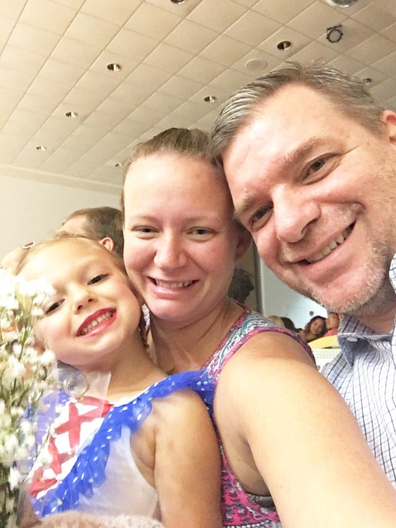 Her sweet teacher had to run on and bring her back to her spot. It was a hot mess. The crowd loved it though. Her friend Addy fell backwards and gave us all a scare but Grace ran over and helped her up which made this mama so proud.