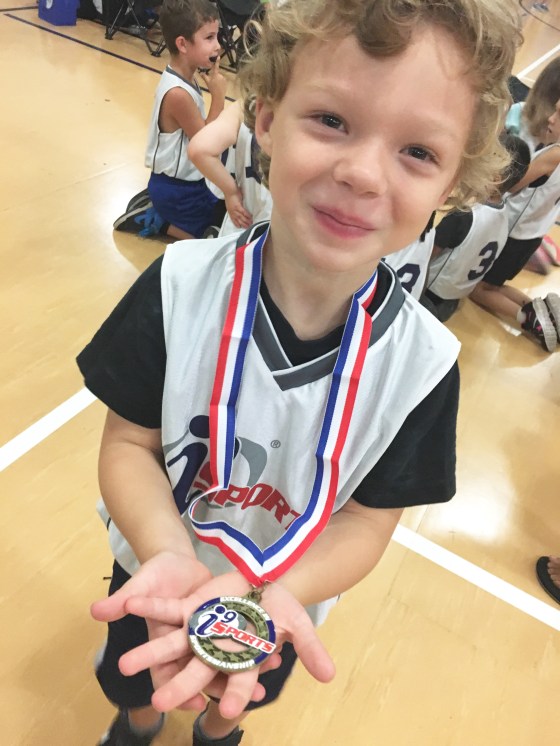 Today he got medal for most enthusiastic. That’s for sure! Every week one player gets a medal for exceptional demonstration of a sportsmanship quality. He was so proud and I know it because he says as we are walking out, “Mom I’m just so proud of myself can you believe I got this medal?” He’s so awesome.