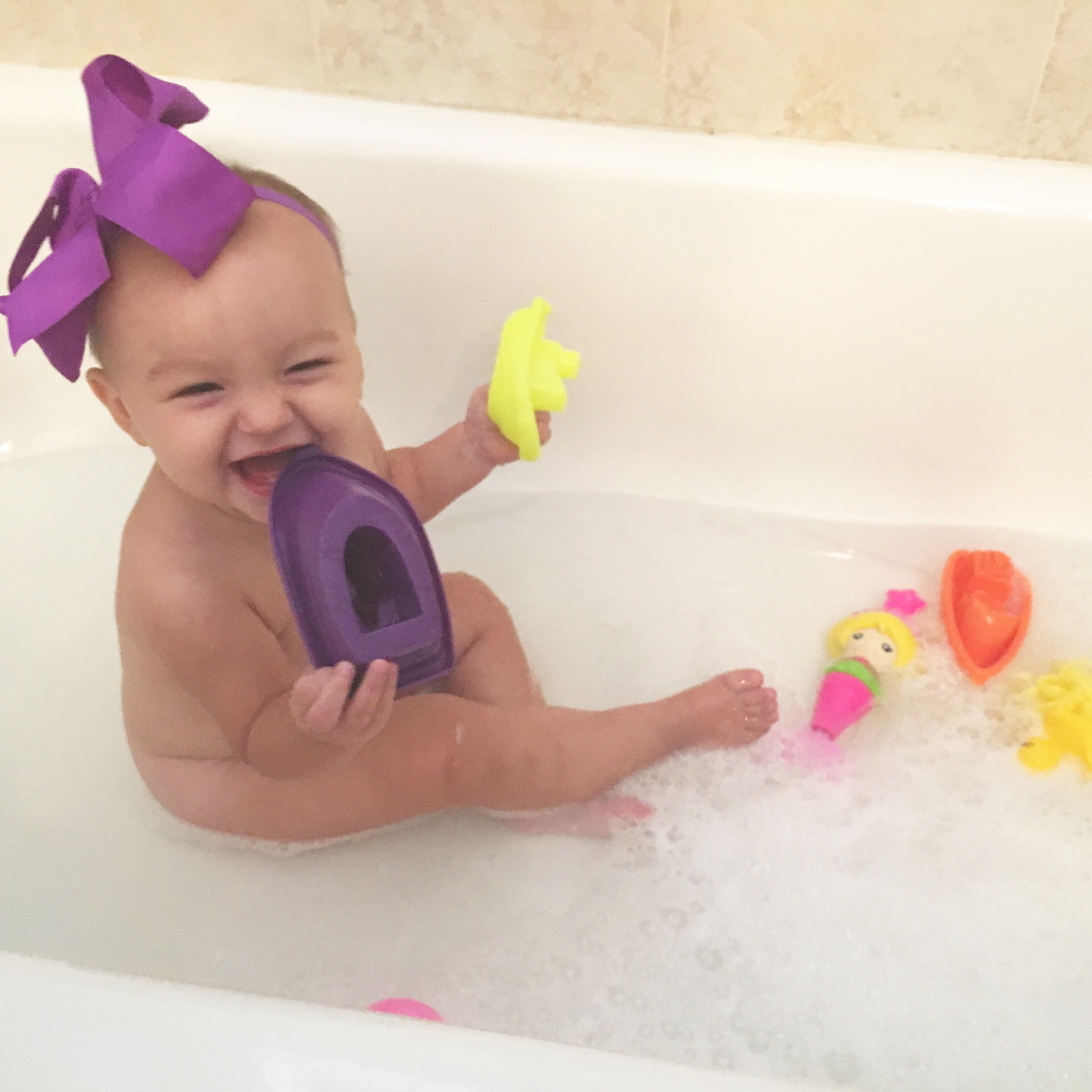 After I blew up our pool and filled it with water and baby wash so that I could send them home all clean!