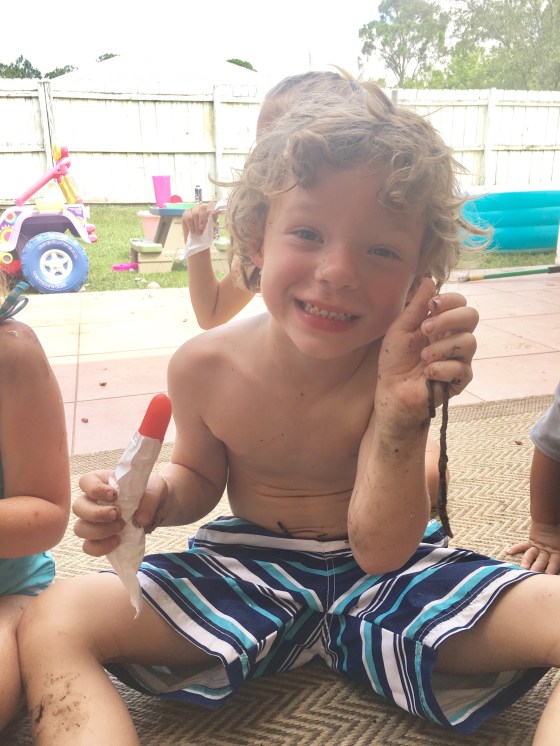 And no summer day is complete without popsicles! Popsicle in one hand, worm in the other. My sweet gross boy β€οΈ