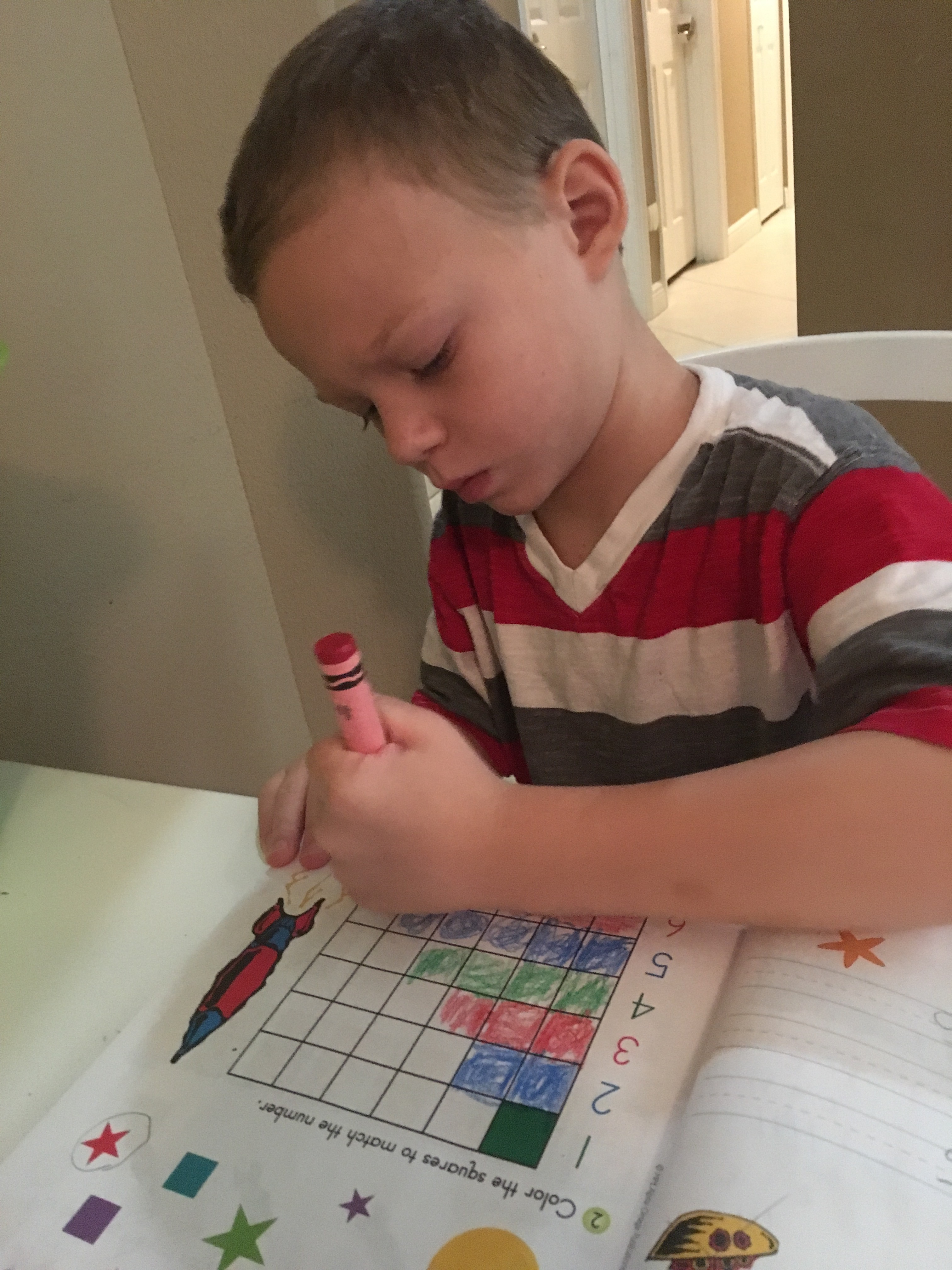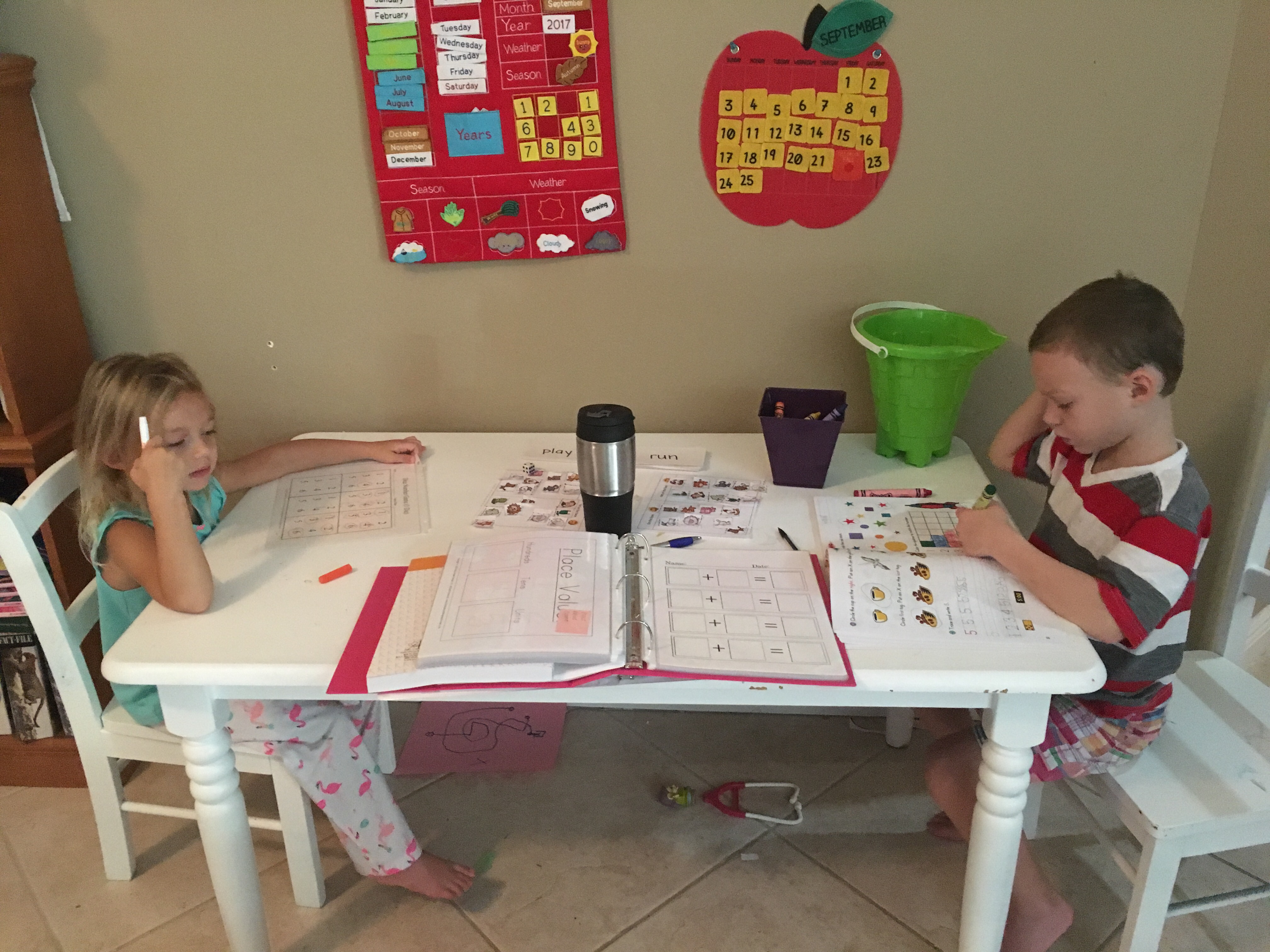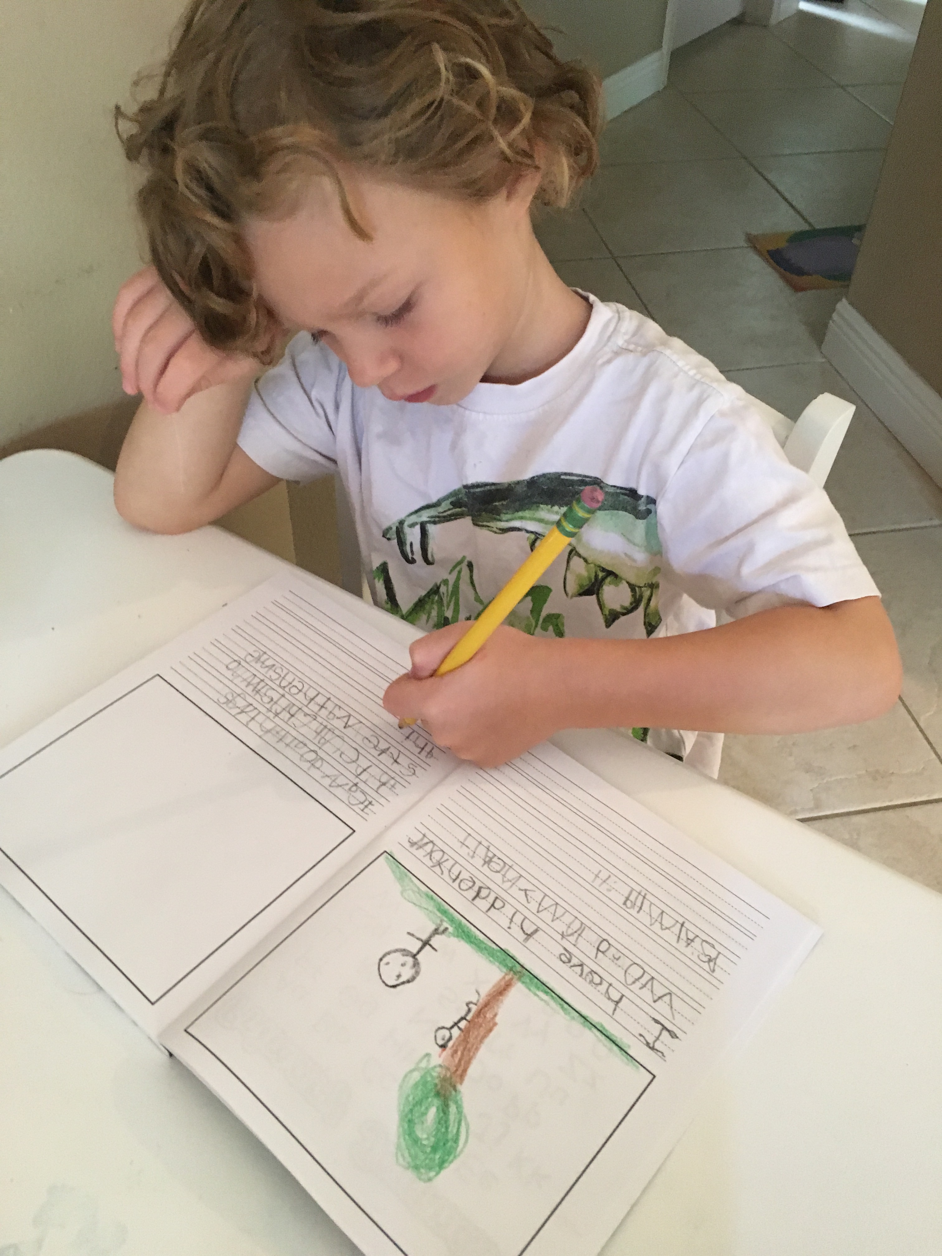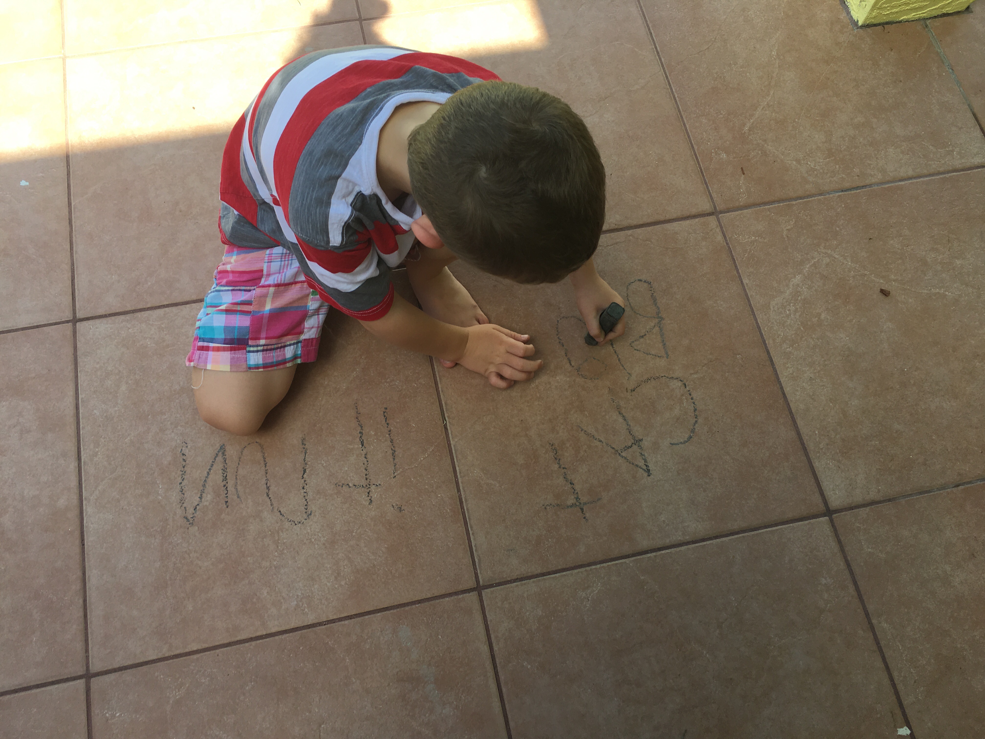 For art they drew cows with chalk and then I gave Timmy a sight work spelling test. Gracie’s cow has a huge head and Timmy’s has an itty bitty head.