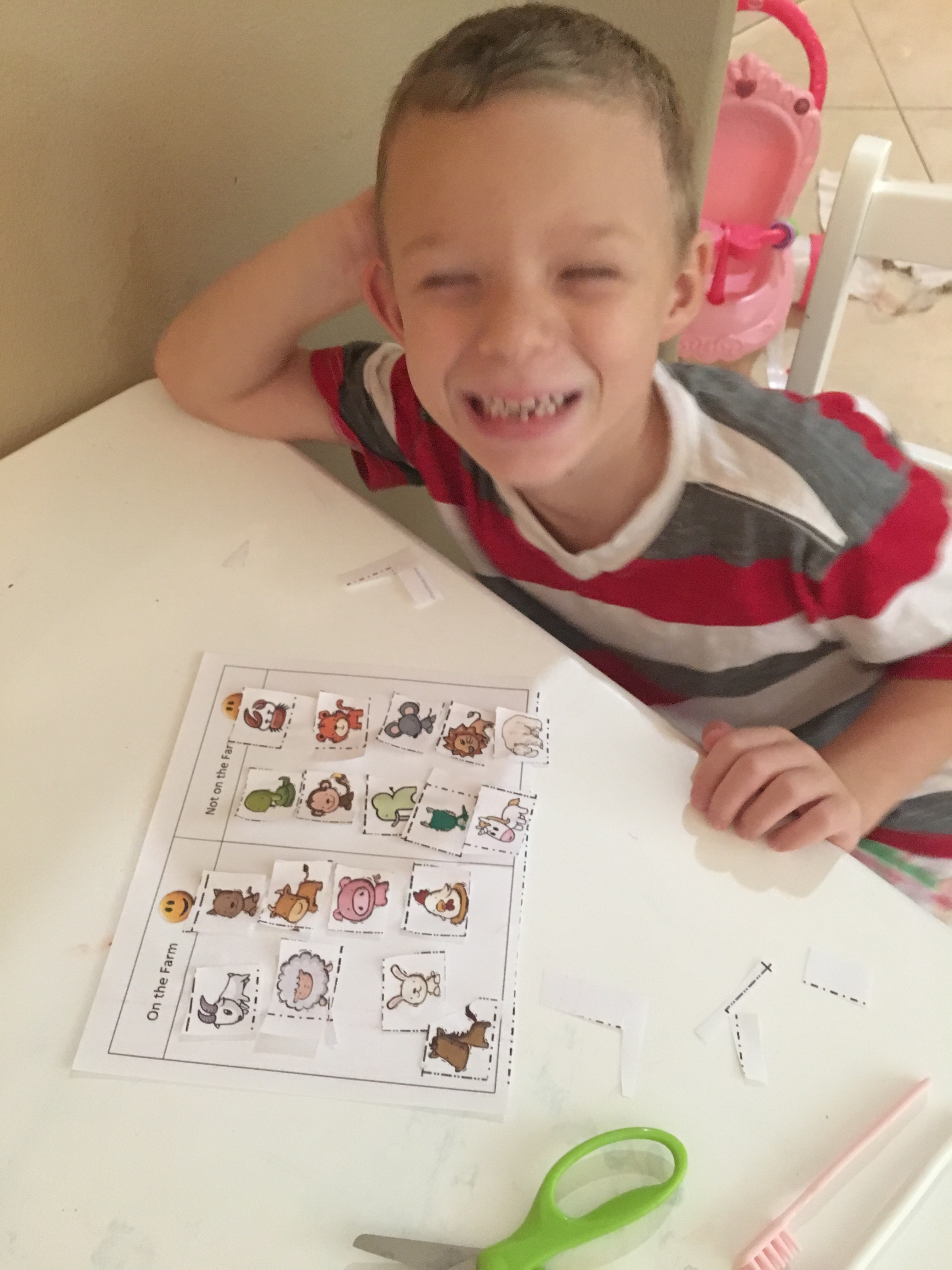 Timmy had to match the animal word to its corresponding picture. I was so proud watching him sound out the words and complete this worksheet by himself.