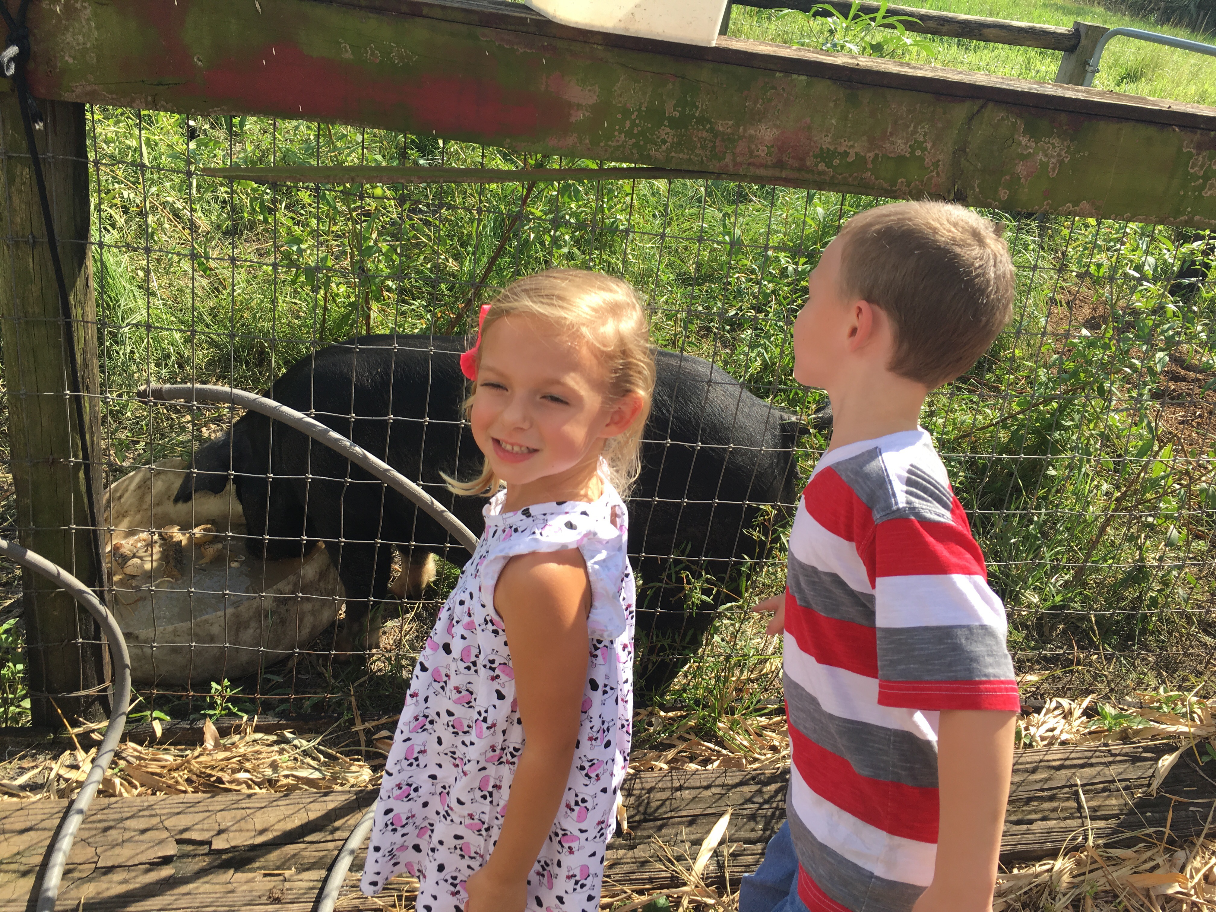 Then these lucky kids took a tour of a real farm. We chased the chickens around, visited with a pig and got up close & personal with a mama cow and her calf.